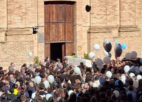 CASTIGNANO - Lo straziante addio al giovane di 17 anni tragicamente scomparso sabato scorso in un incidente stradale. Ai piedi dell’altare, la bara circondata dai simboli delle sue passioni: una maglia dell’Ascoli Calcio, la sciarpa della Polisportiva Castignano e la sua divisa da calcio a 5. Don Catani: «Domenica mattina, mentre dicevo messa, ti cercavo in uno di quegli ultimi banchi dove ti mettevi sempre, purtroppo non ti ho trovato e mai più ti troverò». La lettere della famiglia e degli amici