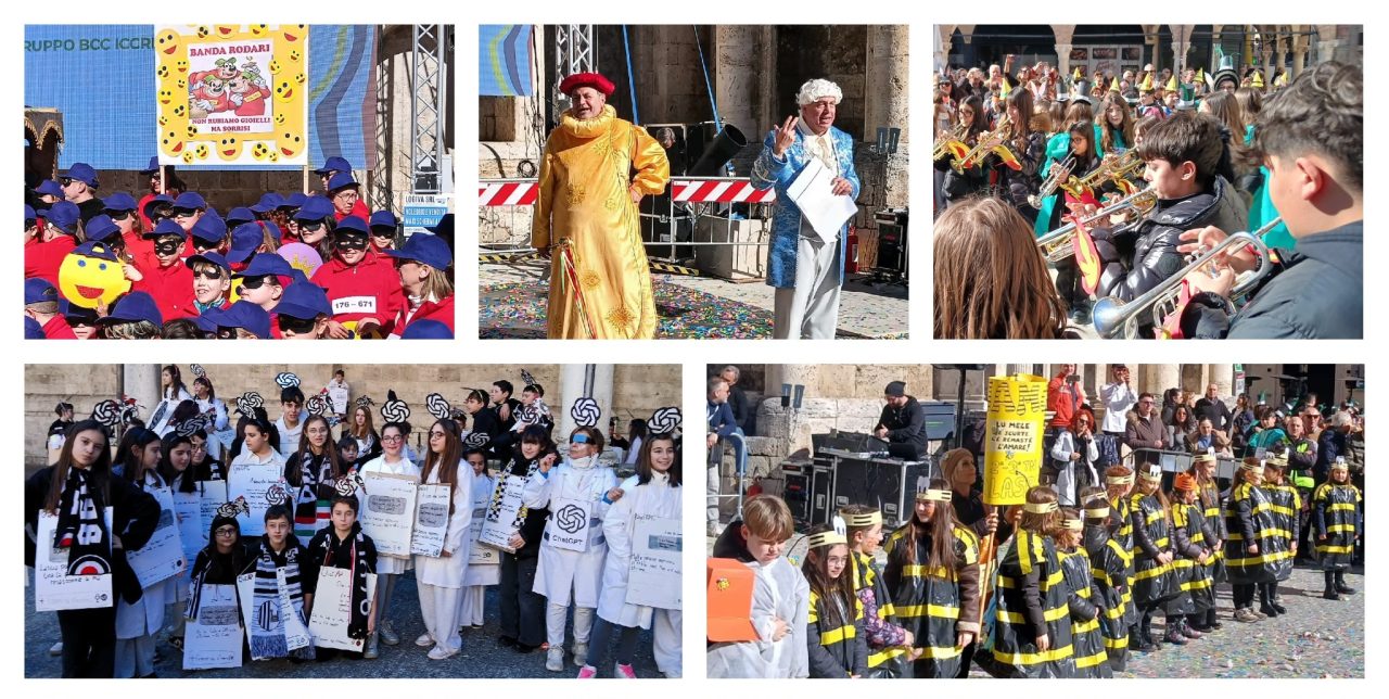 Dal saltarello all’intelligenza artificiale: il “Carnevale delle Scuole” colora la città (Le foto)