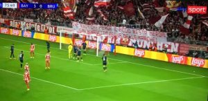 CALCIO - L'omaggio dei tifosi bavaresi, uniti da una lunga amicizia quelli della Samb, durante la partita di Champions contro il Bruges. Un gesto di sprone in vista del derby contro l'Ascoli con un "simpatico" errore di battitura e...scambio di persona -