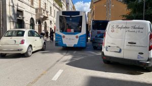 ASCOLI - La segnalazione di alcuni residenti della zona davanti al Tribunale: «I mezzi pubblici, sostando per 10-15 minuti in attesa della ripartenza, occupano parte della carreggiata generando frequenti rallentamenti e ingorghi. La situazione è aggravata dalla presenza di due cantieri nelle vicinanze e dalla visuale limitata per chi proviene da Via Falcone e Borsellino» -