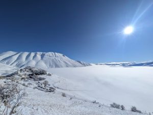 Castelluccio tra realtà e sogno: neve, nebbia e nuvole sulla piana