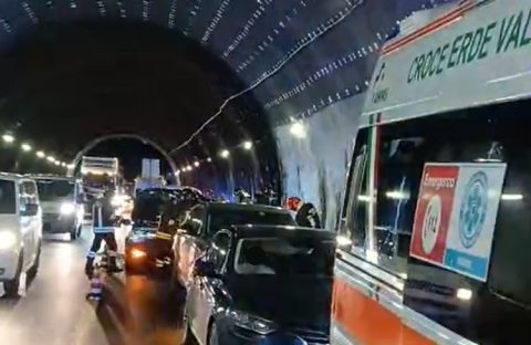 Tamponamento a catena in galleria, quattro veicoli coinvolti: tre feriti (Le Foto)
