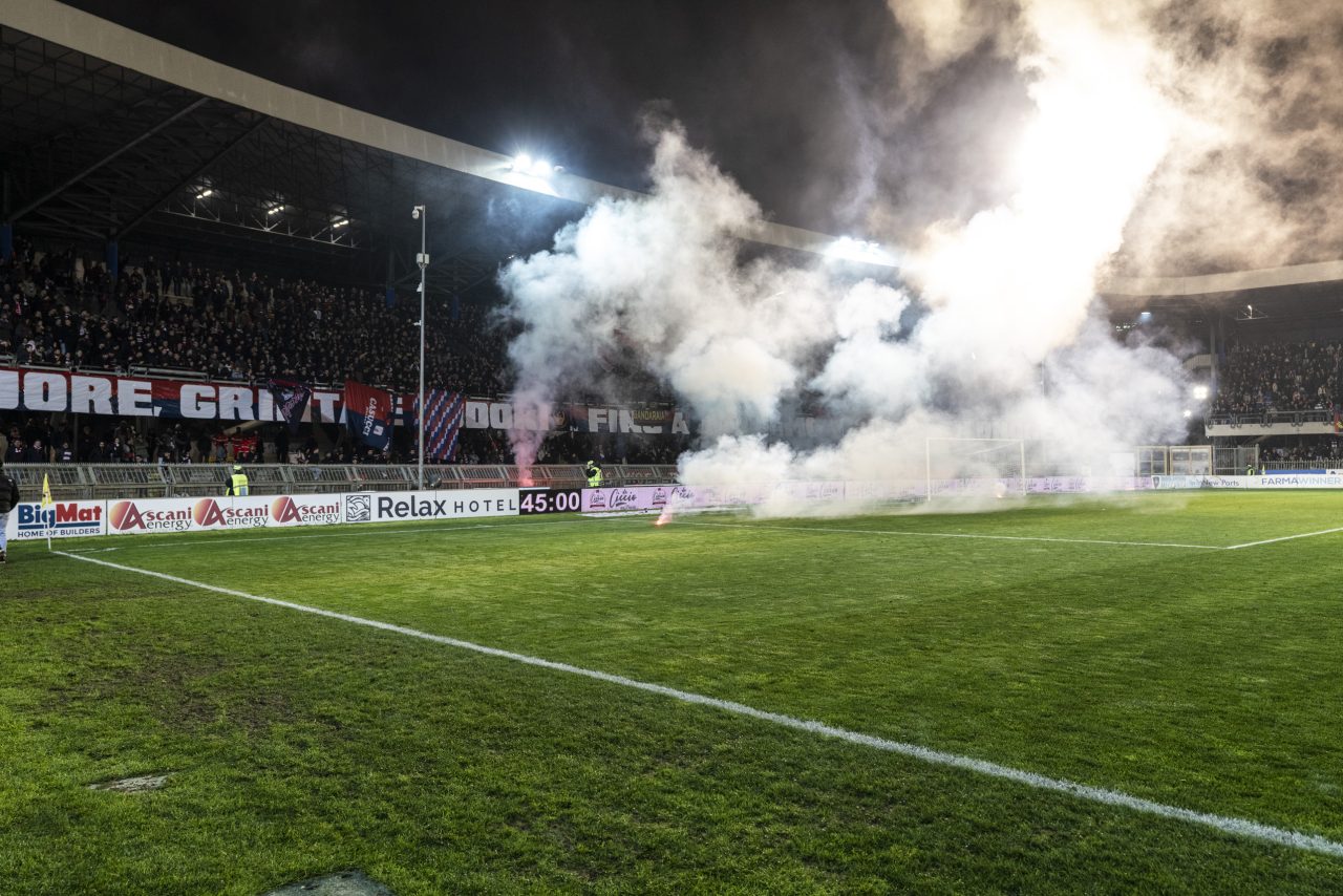 SAN BENEDETTO - Dopo la sconfitta della squadra di casa, una parte consistente dei tifosi della curva nord ha dato vita a una protesta accesa, rivolgendo il proprio dissenso soprattutto verso i giocatori ospiti impegnati nei festeggiamenti in campo: fumogeni, bengala e alcune bombe carta hanno provocato forti deflagrazioni e creato momenti di tensione all’interno del "Riviera delle Palme". I