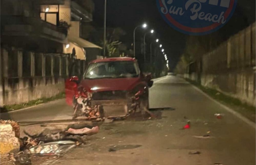 SAN BENEDETTO - L'incidente tra via Sgambati e via Tedeschi. Il mezzo ha impattato con violenza per poi prendere fuoco, illesi i giovani a bordo, tutti della provincia di Pescara…