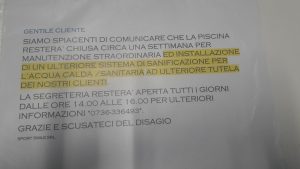 Il cartello affisso in piscina