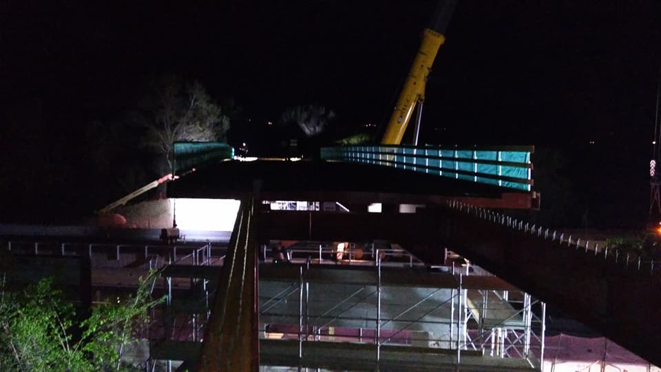 «Installata stanotte la struttura portante del ponte sull’autostrada A14. Un lavoro delicatissimo e coordinato che ha richiesto l’impiego di numerose persone e mezzi. Ora occorreranno altri 45/60 giorni per completare la realizzazione e fare, ovviamente, il collaudo». Sono soddisfatti il sindaco Roberto Ascani e gli assessori della giunta di Castelfidardo. Il montaggio del monoblocco, è andato avanti per tutta la notte. Il nuovo ponte 167, con campata centrale di 40 metri e due campate laterali di circa 12 metri è stato issato da una gru della portata di 400 tonnellate dopo essere stato assemblato pezzo per pezzo nei giorni precedenti. Nella notte è stato montato e bloccato sui piloni. Per permettere lo svolgimento delle operazioni in sicurezza è stato chiuso da ieri sera alle 22 fino a stamattina alle 6 il tratto autostradale compreso tra i caselli di Ancona Sud e Loreto Porto Recanati. Il 9 marzo 2017 il crollo del vecchio impalcato aveva causato la morte dei coniugi Antonella Viviani ed Emidio Diomede di Pagliare del Tronto che stavano viaggiando sulla corsia sud dell’A14. Stavolta durante l’intervento si è preferito chiudere l’autostrada ed è stato inevitabile utilizzare come modalità di montaggio la gru. La volta precedente erano stati utilizzati i martinetti perchè il ponte era preesistente, doveva essere sollevato di pochi centimetri e avrebbe dovuto permettere il transito della traffico sottostante in maniera sicura.
