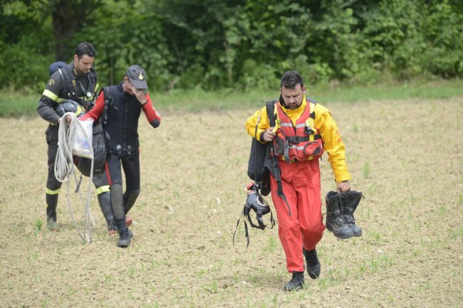 La tranquillità di una domenica di festa è stata squarciata da un macabro ritrovamento oggi a Macerata, nella campagna tra contrada Alberotondo e contrada Pace. Stamattina i residenti non si erano accorti di nulla fino all’arrivo di forze dell’ordine e dei soccorsi. L’allarme era stato lanciato poco prima da un anziano e dal figlio. Fino a quel momento e nei giorni precedenti nessuno aveva sentito o visto movimenti anomali o sospetti. Quando è arrivata la chiamata al 113 sul posto sono arrivati gli agenti della polizia e i vigili del fuoco, con i sommozzatori. Poco dopo anche il questore Antonio Pignataro e il medico legale Francesco Lamberti. All’inizio era chiaro solo che si trattava di un uomo sulla trentina e che le cause della morte erano da ricondurre ad un annegamento. Inoltre, viste le condizioni del cadavere, che l’uomo era morto diversi giorni fa, una decina probabilmente. Solo quando i sommozzatori hanno recuperato il cadavere, la tragedia ha iniziato pian piano a prendere un forma ben precisa.