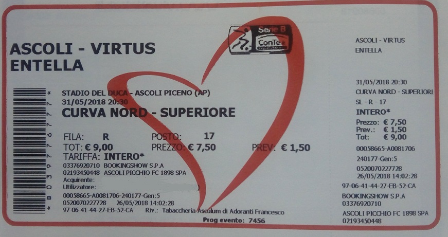 In appena un’ora, sabato, sono stati venduti 1.700 biglietti  che alle ore 15 avevano già toccato quota 2.300 (sui 4.100 disponibili): oltre la metà. I ticket per gli altri settori (curva sud, distinti, tribuna gialla, tribuna rossa sud) erano stati polverizzati venerdì mattina in meno di due ore. Si prevede il record stagionale di spettatori. Sono una cinquantina i punti vendita del circuito “BookingShow” nella provincia di Ascoli, senza contare quelli delle vicine province di Teramo, Fermo e Macerata. I biglietti venduti alle ore 20 sono invece 3.100. Ne restano dunque 1.000 per l’anello inferiore della curva nord. La vendita si chiuderà mercoledì 30 maggio alle ore 19 per i tifosi ospiti, mentre i tifosi dell’Ascoli potranno acquistarli anche giovedì 31, il giorno della partita. Rimanenza che alle ore 18 di domenica è diventata di circa 820 tagliandi, che saranno certamente venduti in poche ore entro lunedì mattina.