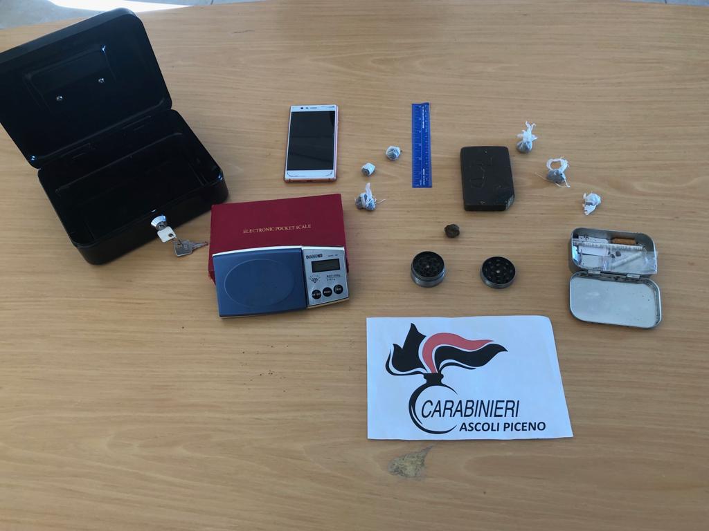 ASCOLI - I Carabinieri della locale Compagnia l'hanno sorpreso mentre consumava la droga all'interno della sua auto parcheggiata in centro. I militari hanno successivamente proceduto alla perquisizione domiciliare, ed è saltato fuori tutto il resto: un etto di sostanza stupefacente e materiale per confezionare le dosi