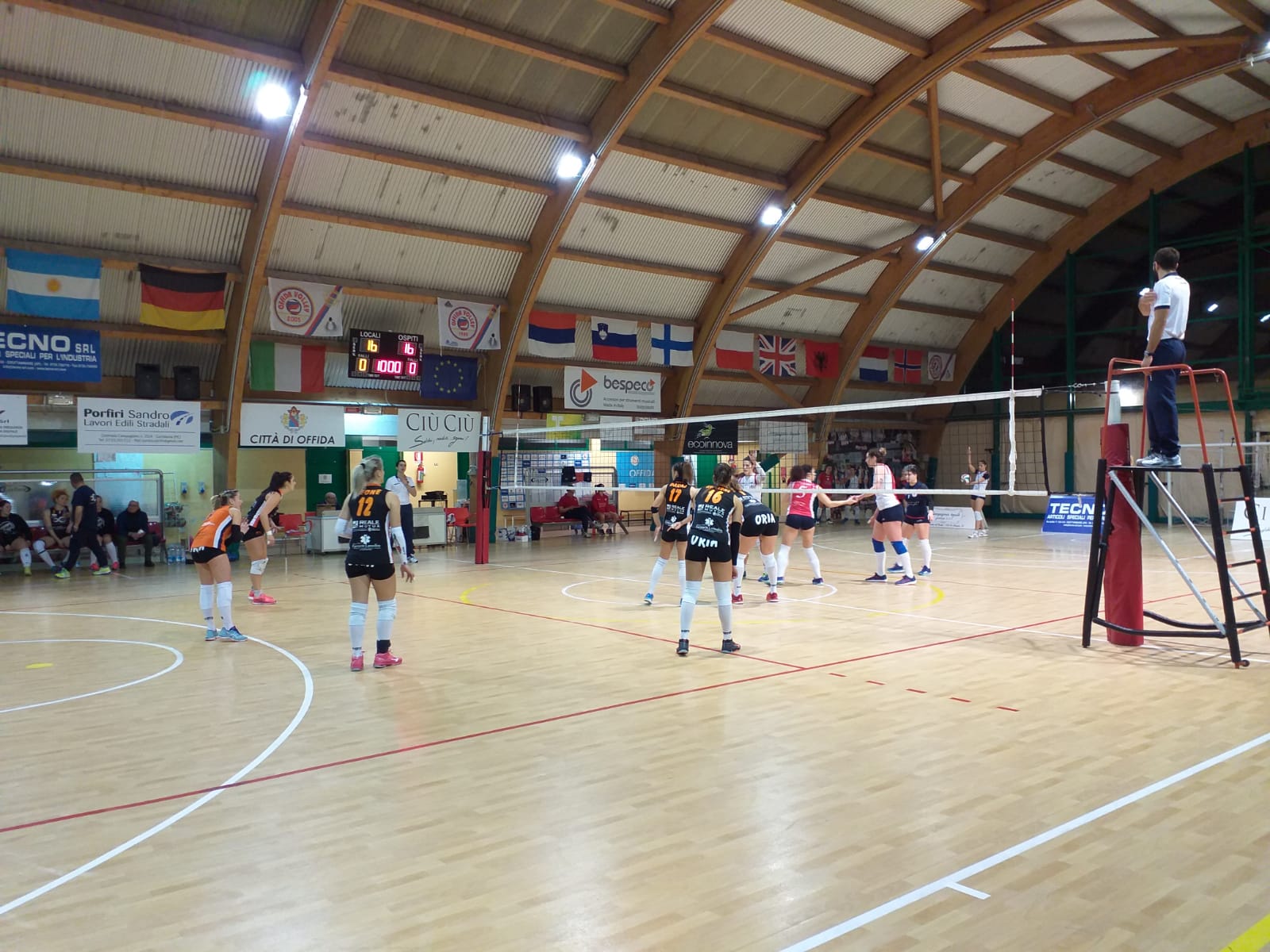 Vittoria dell’orgoglio per la Ciù Ciù Offida Volley nel campionato di pallavolo femminile di Serie B2. Al PalaVannicola le rossoazzurre hanno battuto 3-1 Oria, avversario dalle grandi ambizioni. L’Offida, ancora priva dell’infortunata Bastianutto, dà vita a un primo set all’insegna dell’equilibrio. Ma poi Sopranzetti e Agostini sono brave a condurre la squadra fio al 25-22. Nel secondo set le offidane affondano e in pochi minuti il parziale si chiude sul 25-13. Il terzo è tutta un’altra storia, Oria reagisce e lo fa suo: 23-25. La quarta frazione di gioco vede le ragazze della coach Fusco tirar fuori il massimo. Sara Calisti copre tutto il campo, la Capriotti richiama all’ordine gli attaccanti e si arriva così al 23 pari, poi sarà 25-23 e per Offida è festa. In classifica offidane sempre al 6° posto con 24 punti, a una lunghezza da Copertino. Il prossimo match sabato 9 febbraio alle ore 18,30 a Jesi.