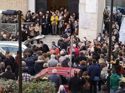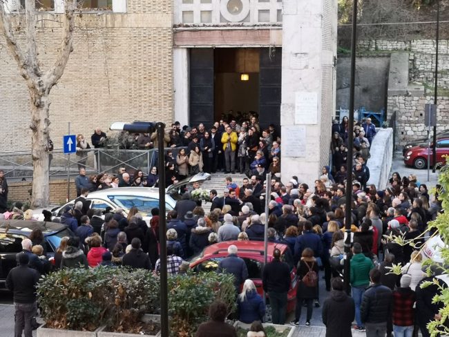 Lacrime, dolore, ricordi e applausi. È così, in una chiesa gremita, che Ancona ha voluto dare l’ultimo saluto a Lorenzo Farinelli, il medico di 34 anni morto lo scorso lunedì dopo aver combattuto per otto mesi contro un linfoma Non-Hodgkin e sperato di raggiungere gli Stati Uniti per curarsi con i fondi raccolti con le donazioni ricevute. Al Santissimo Crocifisso degli Archi, quartiere dove è cresciuto, a centinaia sono giunti questo pomeriggio per stringersi al dolore degli affetti di Lollo, i suo genitori Amalia e Giovanni, la fidanzata Martina, gli amici, i colleghi e i compagni di teatro. Alcune persone, come l’assessore Stefano Foresi, hanno seguito l’omelia fuori dalla chiesa, tanto l’interno era gremito. L’arrivo del feretro è stato salutato con un lungo applauso.