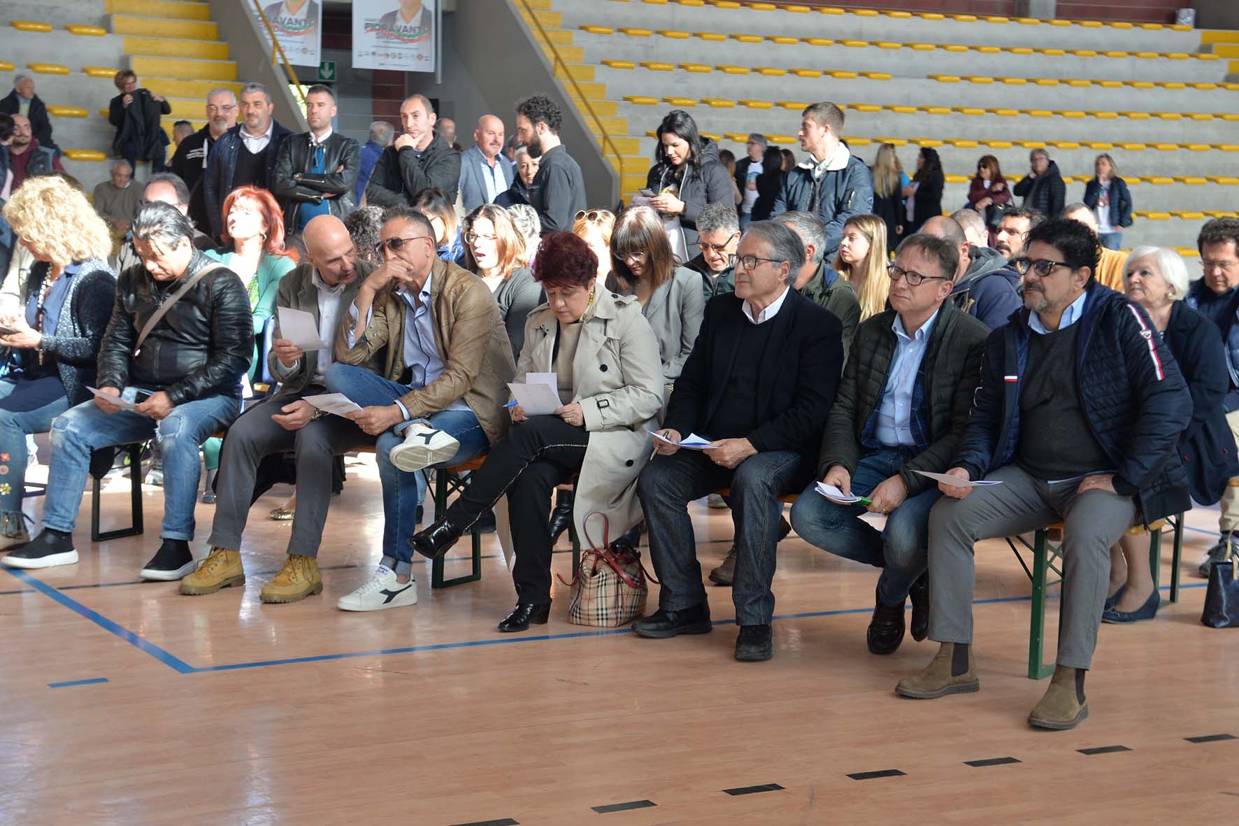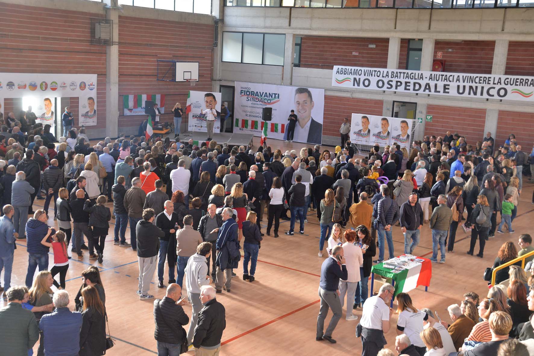 «Siamo una squadra di persone innamorate della città, che fa politica tra la gente, con un progetto dalle fondamenta solide che resiste agli attacchi strumentali, perchè liberi di guardare le persone in faccia». Sono le parole del candidato sindaco del centrodestra Marco Fioravanti, pronunciate alla convention al Palazzetto dello sport di Monticelli in occasione della sua presentazione e delle liste in suo sostegno. «Il nostro programma di sedici punti – ha spiegato Fioravanti di fronte a 700 persone- è un patto con gli ascolani sul quale ogni giorno potranno misurarci. Saremo sulle strade, perchè liberi di guardare negli occhi l’altro e creare una casa sempre aperta alla solidarietà e a tendere la mano ai bisognosi». Tra le priorità la ricostruzione: «Gli dedicheremo un politico e un dirigente per seguirne giorno dopo giorno le dinamiche, ma anche per spendere i contributi comunitari per imprese e famiglie del territorio per rigenerare l’economia e il commercio». Altro punto solido il mantenimento dell’ospedale ‘Mazzoni’. «Senza di esso Ascoli non ha futuro. Diciamo ‘no’ ad un progetto di palazzinari di ogni colore politico che voleva speculare sulla salute dei cittadini con 500 milioni, e ‘sì’ ad un’azienda ospedaliera Marche Sud. La sanità non si fa mettendo soldi sulle sacchette di cemento, ma valorizzando il personale e aumentando i servizi».