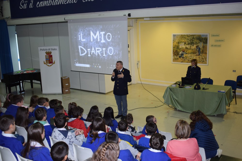 La Polizia di Stato ha rinnovato per il sesto anno l’iniziativa “Il mio diario” il cui fine è avvicinare i giovani studenti delle scuole elementari alla cultura della legalità. Attraverso i super eroi a fumetti Vis e Musa, e con il contributo di Geronimo Stilton (il topo giornalista più amato dai bambini), vengono infatti affrontati temi come la salute, lo sport, l’ambiente, l’integrazione sociale, l’educazione stradale, l’utilizzo di internet e dei social, i fenomeni di devianza più vicini ai ragazzi di questa età come bullismo e cyberbullismo.