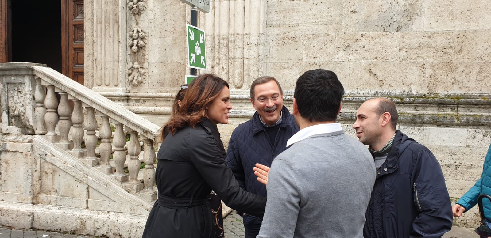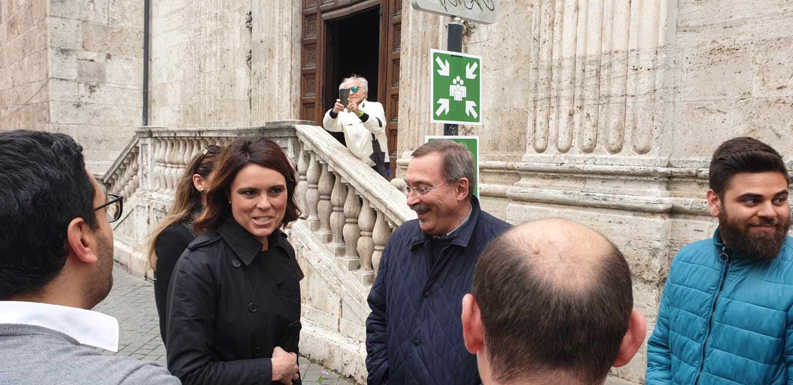 I temi europei ricondotti alle esigenze della realtà locale. Tradotto: finanziamenti e progetti comunitari. Sono l’essenza dell’incontro pre pranzo di oggi tra il candidato della lista di centrosinistra Pietro Frenquellucci e l’eurodeputato e candidata del Pd Simona Bonafè. Il direttivo guidato dal segretario Angelo Procaccini e alcuni dei candidati delle quattro liste cittadine hanno accolto l’ospite alle ore 13 in Piazza Arringo.