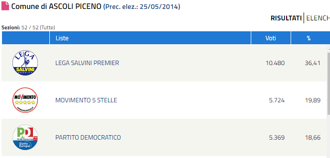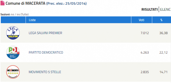 La Lega va meglio nei centri minori mentre resta sotto la media generale nelle realtà più urbane seppure sempre in crescita. La città di Macerata trae le prime indicazioni dal voto anche in vista delle comunali del prossimo anno con la Lega quasi inesistente fino a qualche anno fa ed oggi al 36.38%. Il Partito Democratico al governo dela città con la coalizione di centro sinistra guidata da Romano Carancini riduce il suo bacino elettorale (22,12%) mentre resta ancora più sotto il M5stelle al 14,71%. Buono il risultato di +Europa che aggregata a Italia in Comune del sindaco di Parma Pizzarotti ha candidato Stefania Monteverde e in città ha raggiunto il 5,75%.