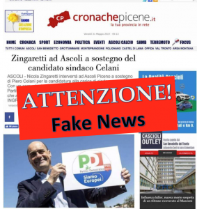 Ci mancava pure la fake news a intorbidare, anzi avvelenare, la campagna elettorale per l’elezione del nuovo sindaco di Ascoli. Il solito ignoto che sparge bufale in maniera irresponsabile, senza pensare ai danni che può provocare anche una sola parola, ha colpito anche “Cronache Picene” che quotidianamente cerca di offrire un’informazione il più possibile corretta e certamente sganciata da qualsivoglia “carro”.