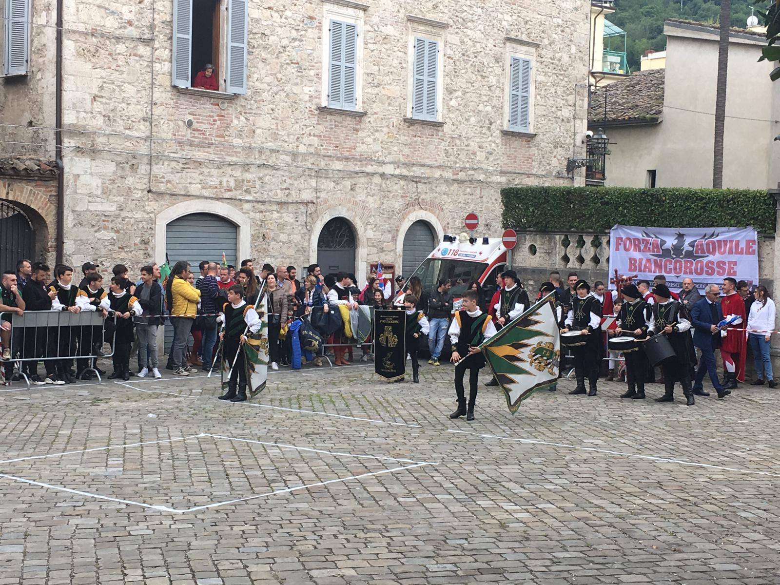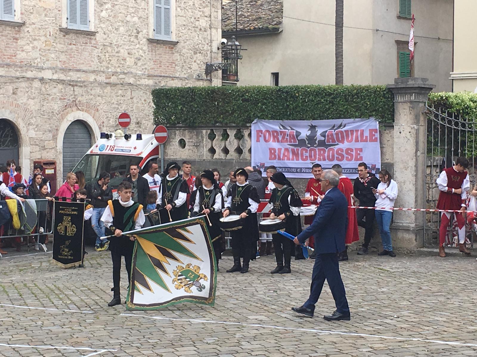 E’ in fase di svolgimento ad Ascoli la quarta edizione del “Torneo dell’Aquila” in cui si sfidano sbandieratori e musici. E’ organizzato dal Sestiere della Piazzarola e lo scenario delle varie esibizioni è l’antica piazzetta al centro del quartiere. In mattinata le specialità di singolo, coppia e piccola squadra delle categorie Under.