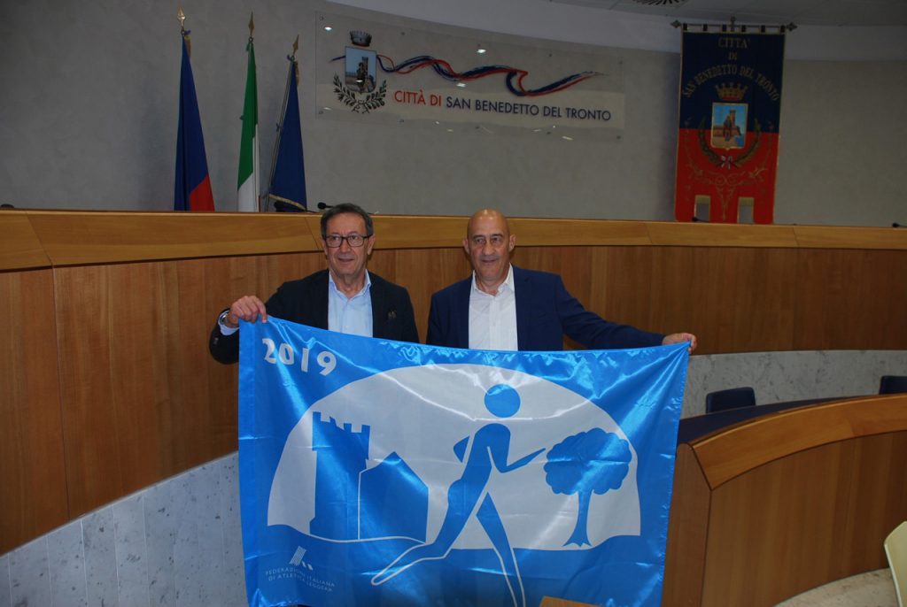 Al termine il sindaco Pasqualino Piunti riceverà la “Bandiera Azzurra 2019”, la cui assegnazione è stata ufficializzata questa mattina 19 settembre alla presenza Maurizio Damilano, oggi 62enne, due volte campione del mondo di marcia e campione olimpico a Mosca 1980, ideatore del progetto e testimonial per conto della Fidal, rappresentata per l’occasione dal presidente regionale delle Marche, Giuseppe Scorzoso.