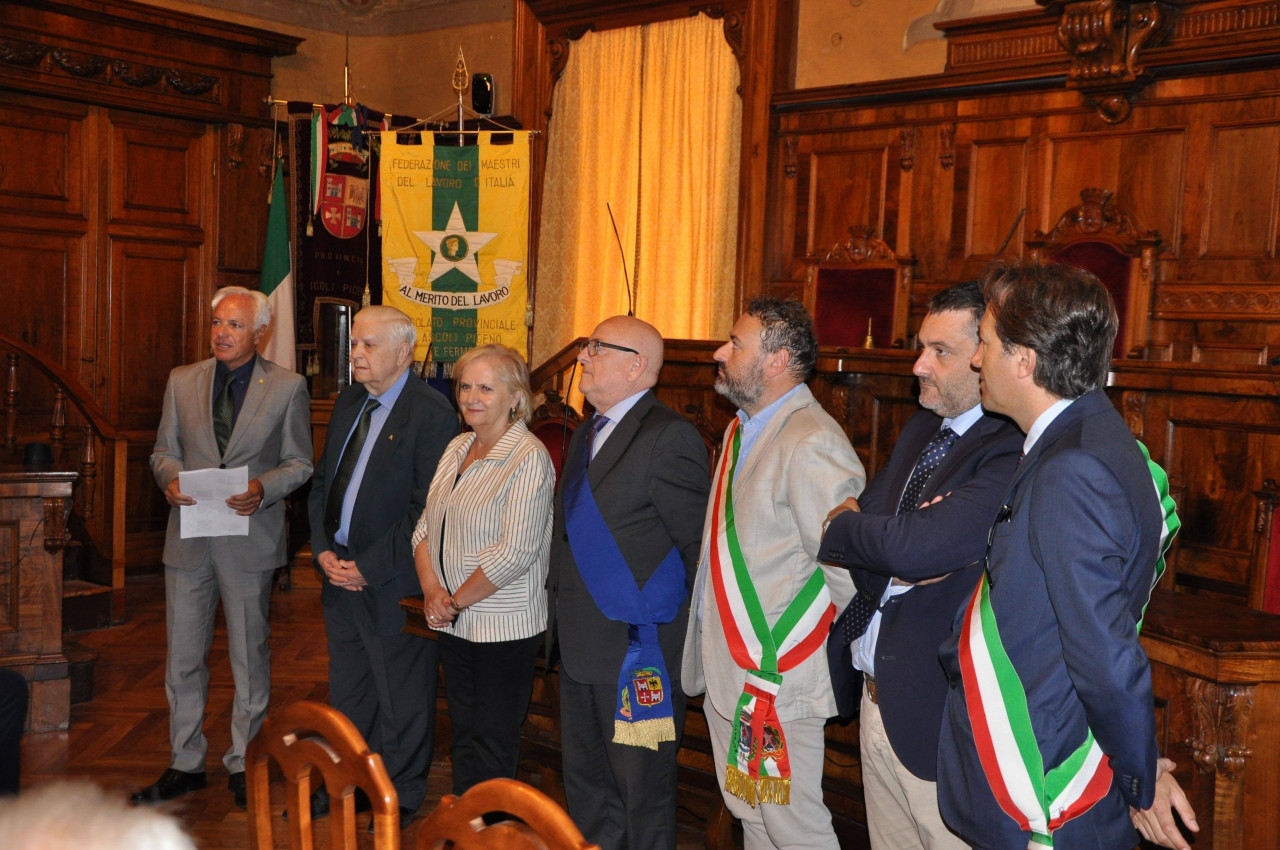 Sono stati consegnati questa mattina nella sala del consiglio della provincia di Ascoli gli attestati di Benemerenza ai nuovi Maestri del Lavoro insigniti della Stella al Merito dal presidente della Repubblica il 1 maggio scorso. Una cerimonia prerogativa della nostra Provincia estesa poi a quella di Fermo e che qualche altro consolato provinciale italiano ha poi replicato sulla scia della nostra iniziativa.