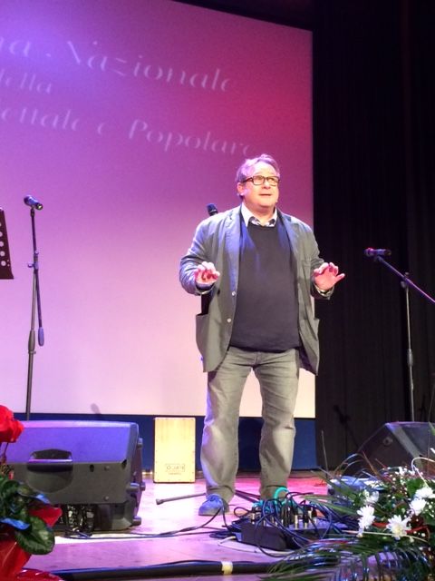 «Non c’è Carestia, in compenso è venuta l’abbondanza»: così ha esordito Gianluca Giugliarelli, comico e cabarettista (noto al grande pubblico per aver partecipato a trasmissioni come “Zelig” e “Colorado Cafe”), facendo riferimento alla sua stazza, chiamato a sostituire Angelo Carestia nella seconda “Rassegna Nazionale della Canzone Dialettale e Popolare” che si è svolta a Comunanza sabato 16 novembre. Una serata, condotta dall’ex Miss Italia Nadia Bengala e firmata ancora una volta da Gabriele Brandozzi, direttore artistico, all’insegna dell’allegria e della spensieratezza «di cui tanto c’è bisogno nei paesi colpiti dal sisma che pian piano si stanno rialzando», ha ricordato il sindaco Alvaro Cesaroni. La kermesse è inserita nel cartellone della Regione Marche, rappresentata all’auditorium “Adriano Luzi” di Comunanza da Piero Celani vice presidente del Consiglio regionale, nell’ambito del progetto “Marche Invita” che prevede spettacoli dal vivo gratuiti per la rinascita dei territori colpiti dal sisma.