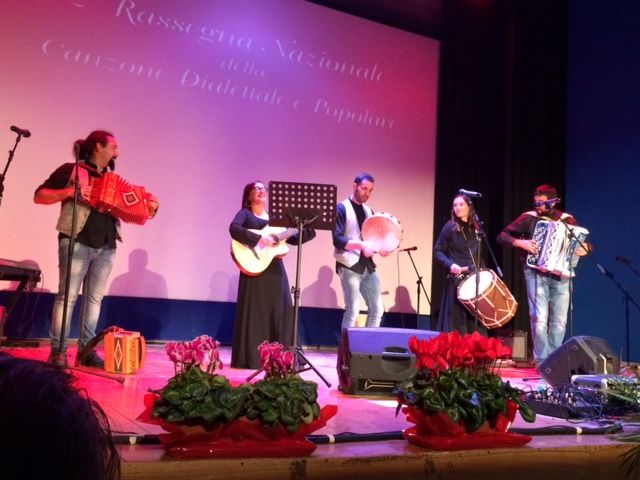 Davide Di Pietro, maestro di organetto abruzzese, ha aperto le esibizioni insieme con Alessio Castorani, il duo appunto si chiama “3-1”, con “Volta la carta” di Fabrizio De Andrè, per poi lasciare spazio all’appassionata canzone napoletana interpretata dal tenore Roberto Cruciani, accompagnato al piano da Enzo Titta. Travolgente la musica popolare del gruppo ascolano “A Randerchitte”, premiato nella scorsa edizione della Rassegna, portavoce di antiche tradizioni cantante e suonate come si faceva un tempo. I componenti si solo però lasciati prendere la mano dalle, seppure meritatissime, luci della ribalta tanto da non accorgersi subito del “taglia” che la presentatrice continuava a gesticolare sull’orlo della disperazione. «L’Abruzzo è tosto e non si scoraggia» hanno invece cantato in teramano i “Vivo Folk”, raccontando dei terremoti di cui la loro terra è stata vittima anche di recente e con il chiaro intento di essere per tutti un incitazione a rialzarsi.