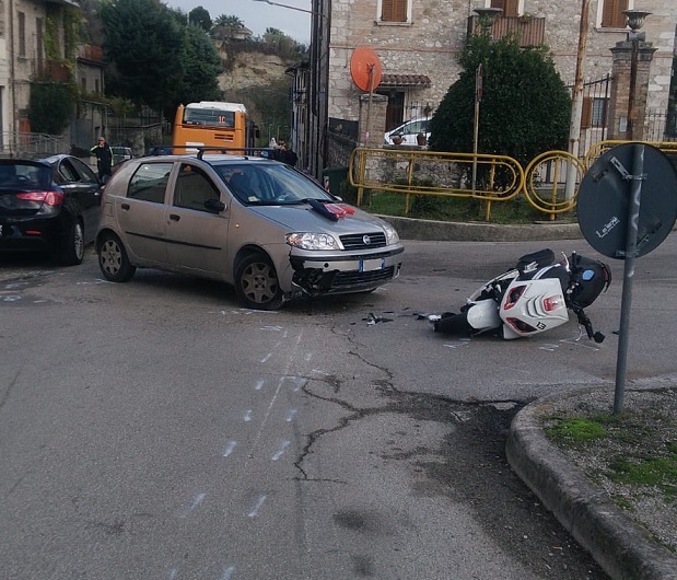 Incidente stradale intorno all’ora di pranzo oggi ad Ascoli. E’ accaduto a San Filippo, una zona della città sempre molto trafficata specialmente in coincidenza con gli orari di entrata e uscite delle scuole, che in quel quartiere sono numerose. Uno scooter proveniva da viale della Repubblica, diretto verso Monticelli, quindi verso il ponte di San Filippo. Proprio da quella direzione procedeva una Fiat Punto, condotta da una donna di 51 anni, che ha svoltato a sinistra all’altezza dell’aiuola spartitraffico.