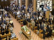 MACERATA – In centinaia al funerale del 54enne morto improvvisamente lunedì sera. Le toccanti parole del figlio Blasco e del fratello Federico. La cerimonia celebrata dal cugino Andrea. Tra i presenti anche l’attore Simone Riccioni e l’imprenditore Iginio Straffi