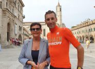 ASCOLI – Il campione del ciclismo in città per le riprese dello spot promozionale della Regione Marche dedicato alla sostenibilità ambientale e alle ciclovie