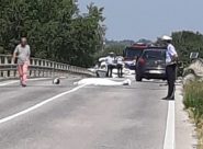 JESI – Nell’incidente è morto sul colpo un uomo di Agugliano (Ancona). Ferito in maniera non grave il conducente di una delle auto contro cui ha impatto il due ruote