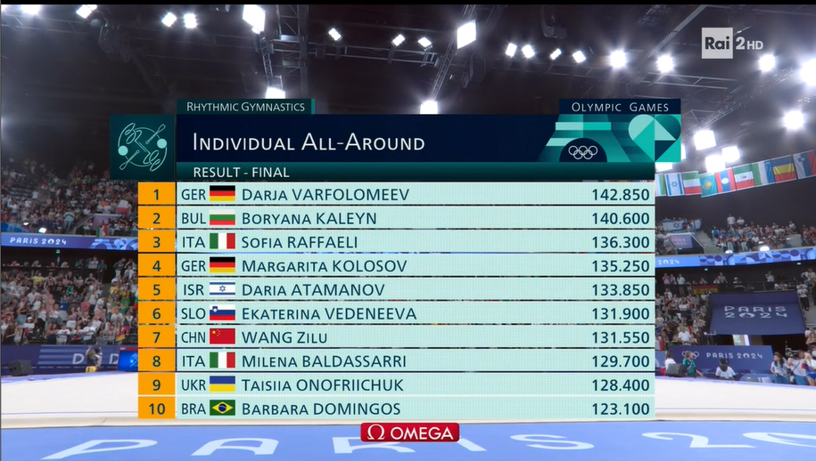 Sofia Raffaeli continua a fare l’impresa nella storia della ginnastica artistica. Nel concorso all-around di ginnastica ritmica ai Giochi di Parigi. oggi pomeriggio la ginnasta azzurra alla sua prima Olimpiade, ha vinto la medaglia di bronzo.