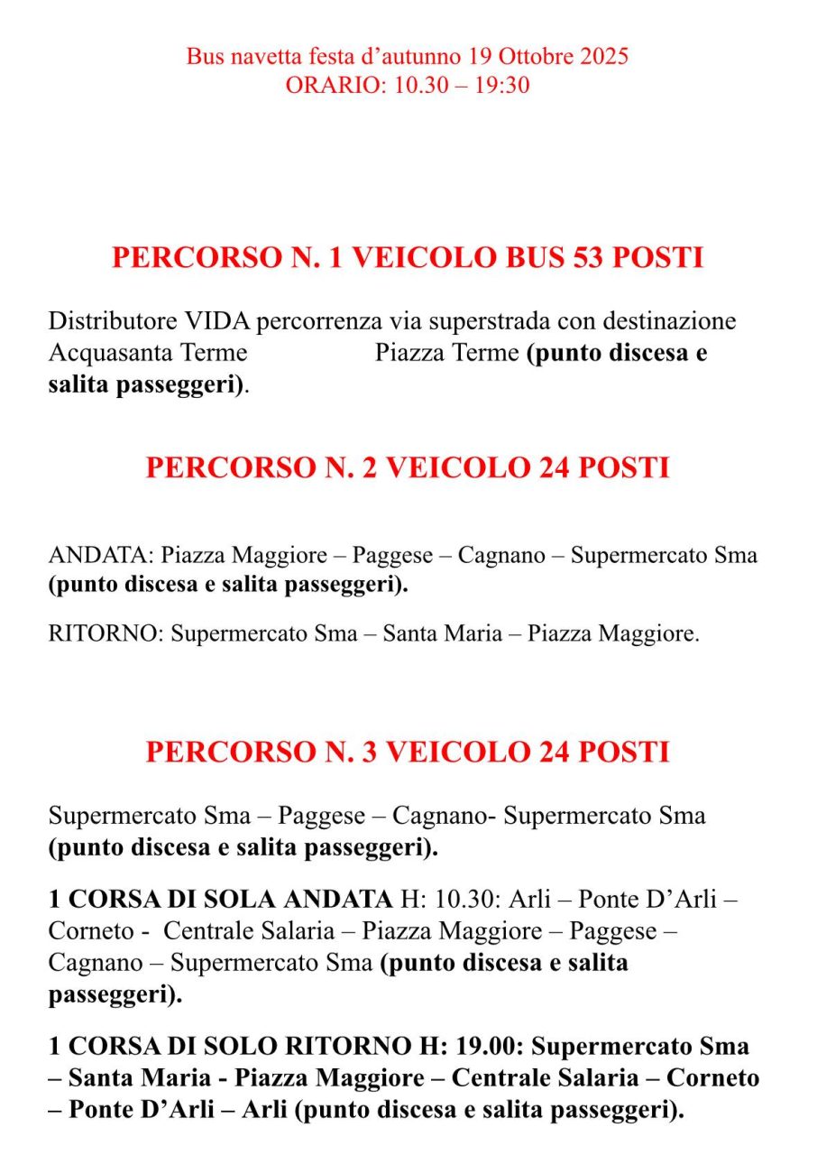 Per facilitare l’accesso, sarà attivo un servizio navetta gratuito che collegherà le principali aree di parcheggio al centro della festa. Qui sotto gli orari e i percorsi.