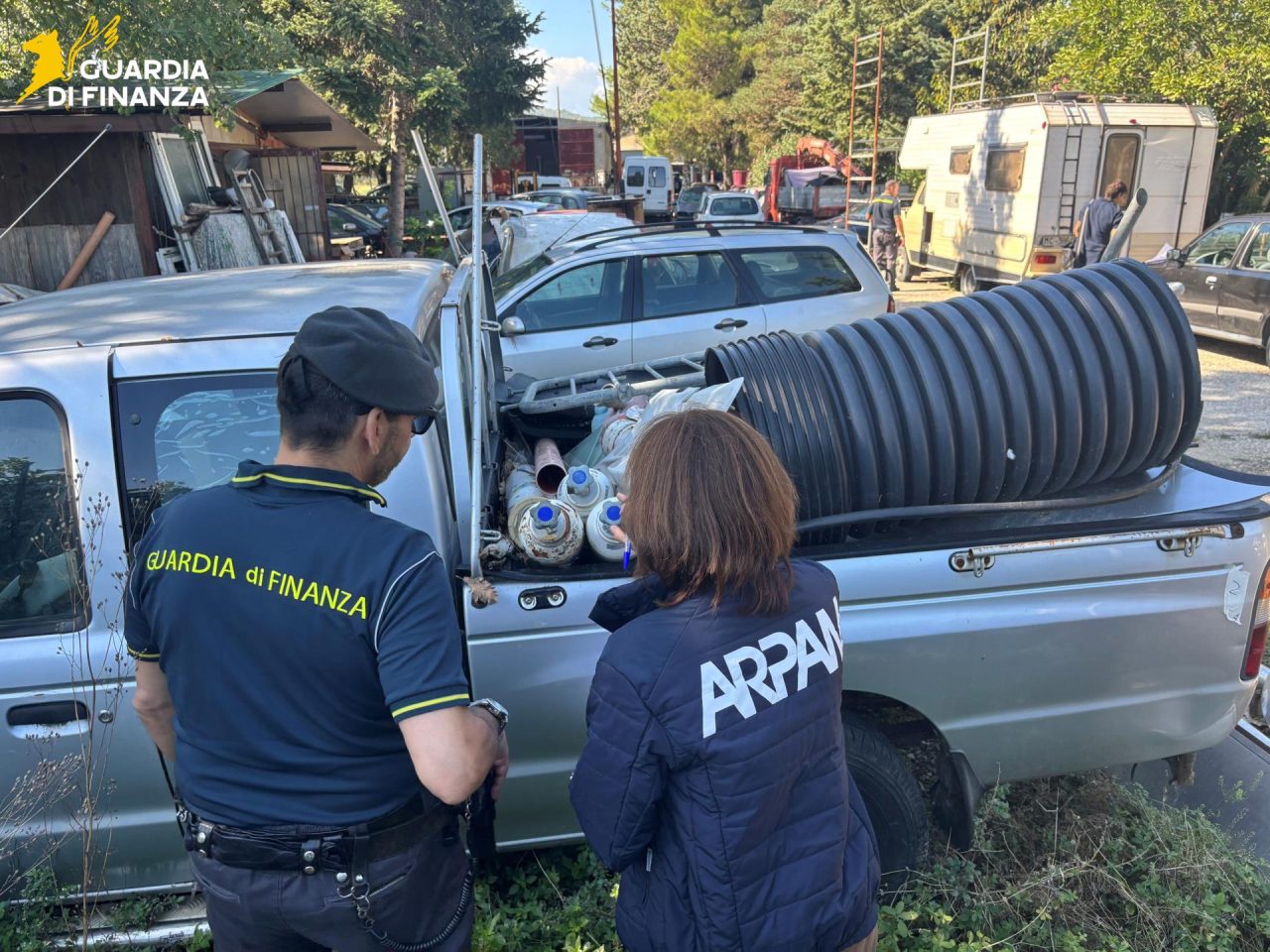 Al termine delle indagini, le Fiamme Gialle hanno posto sotto sequestro anche quattro strutture abusive – due completamente prive di autorizzazioni e due realizzate in difformità edilizia – oltre a 830 tonnellate di materiali tra batterie al litio, bombole di gas, lampade al neon e altri componenti ad alto rischio di inquinamento.