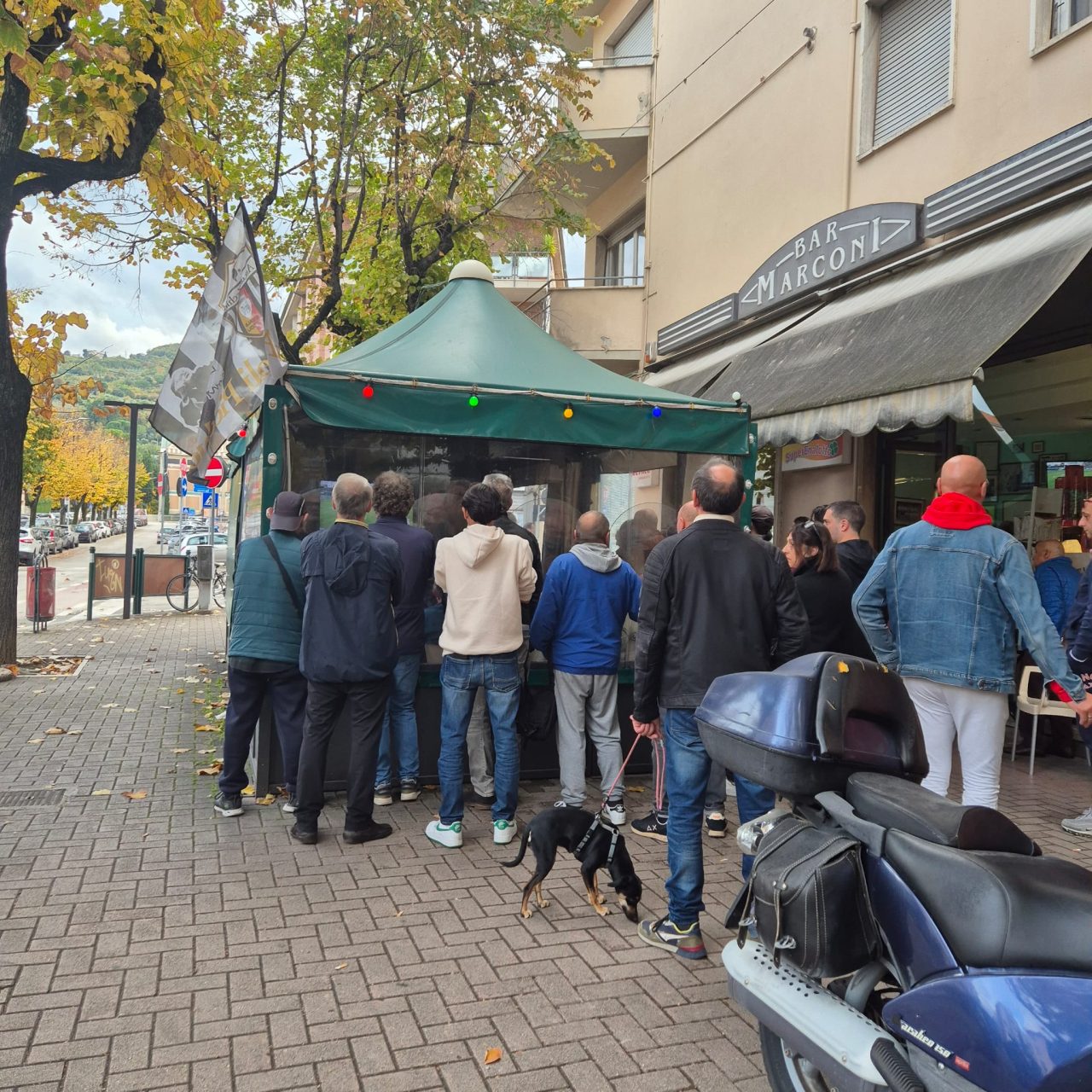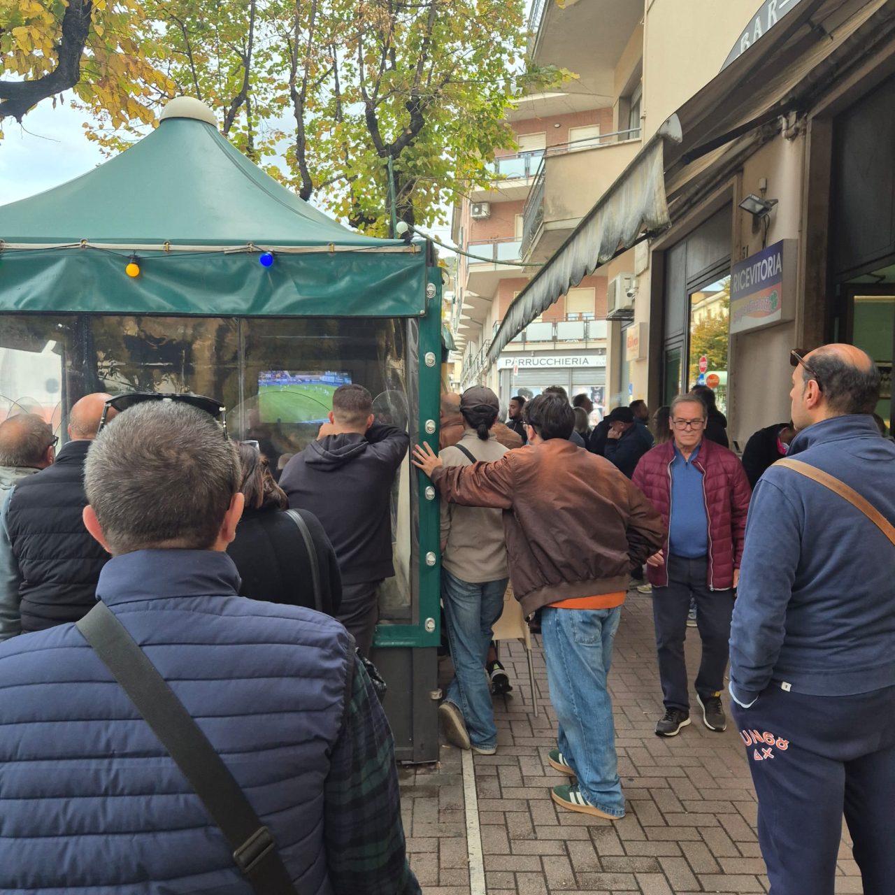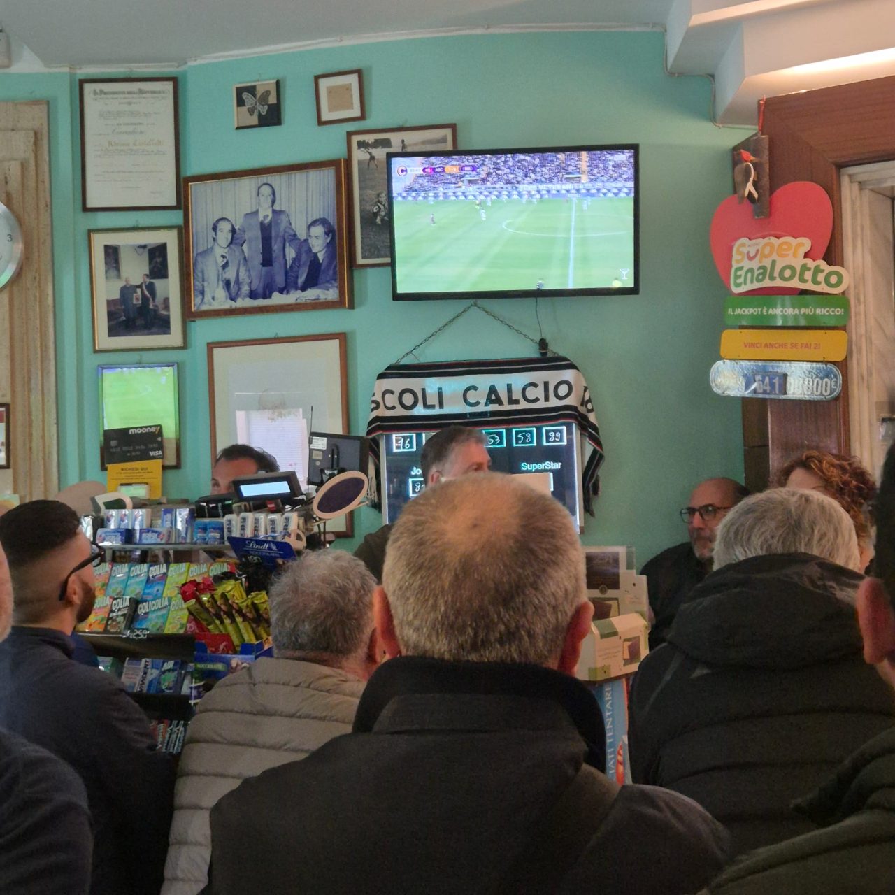 Al bar Marconi di Ascoli, vecchio covo bianconero da sempre, c’è chi è venuto molto presto a prendere posto su una delle poche sedie sotto il gazebo esterno consacrato al calcio in tv. Gli altri sono rimasti fuori. Dentro, il bar è pieno. Ma tutte le partite a carte sono state sospese alle 14,30. Causa derby in tv.