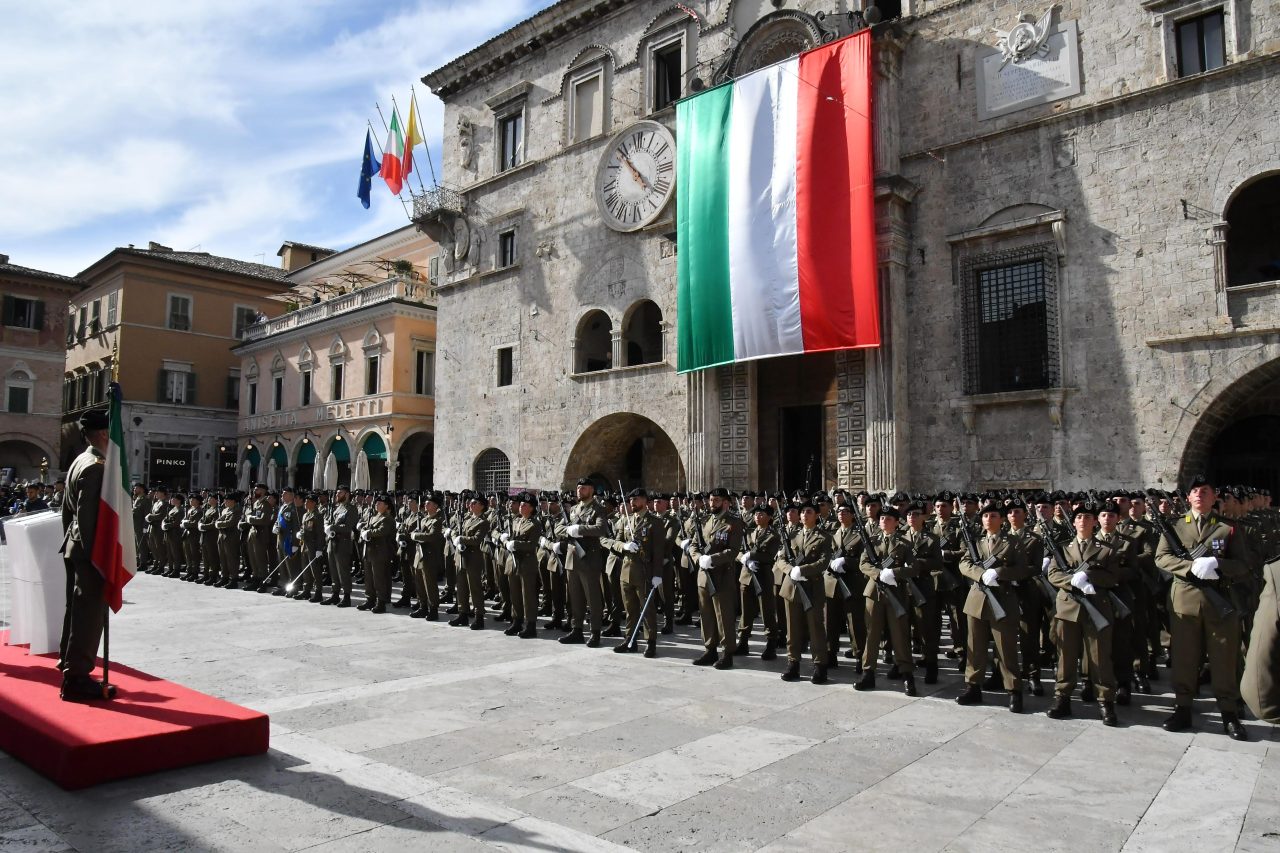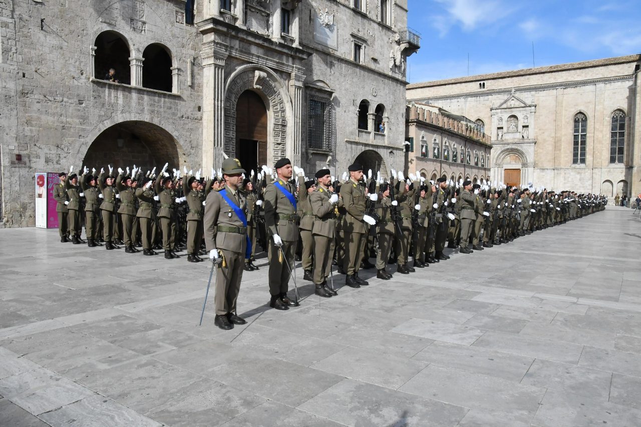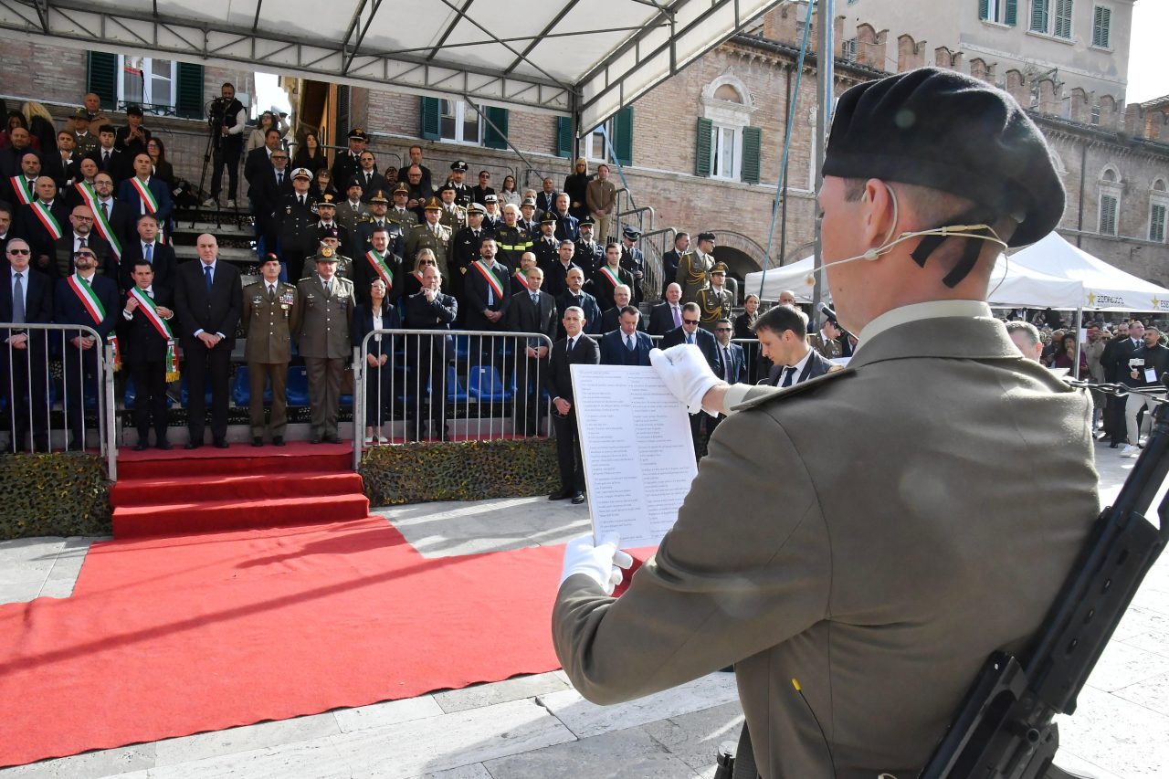 Una Piazza del Popolo vestita a festa e gremita di emozione ha fatto da cornice, questa mattina, alla cerimonia di giuramento degli 800 volontari in ferma iniziale dell’Esercito del 2° blocco 2025, in forza al 235° Reggimento Addestramento Volontari “Piceno”.