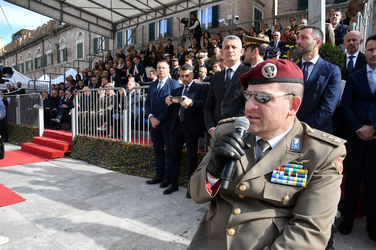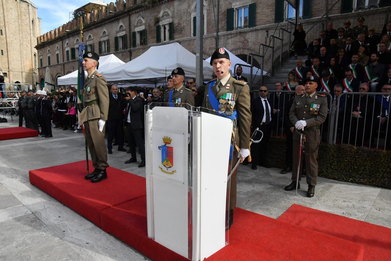 Come da tradizione, hanno preso parte alla cerimonia anche il gonfalone del Comune e della Provincia di Ascoli Piceno – entrambi decorati di Medaglia d’Oro al Valor Militare – insieme ai Labari e ai rappresentanti delle Associazioni Combattentistiche e d’Arma.