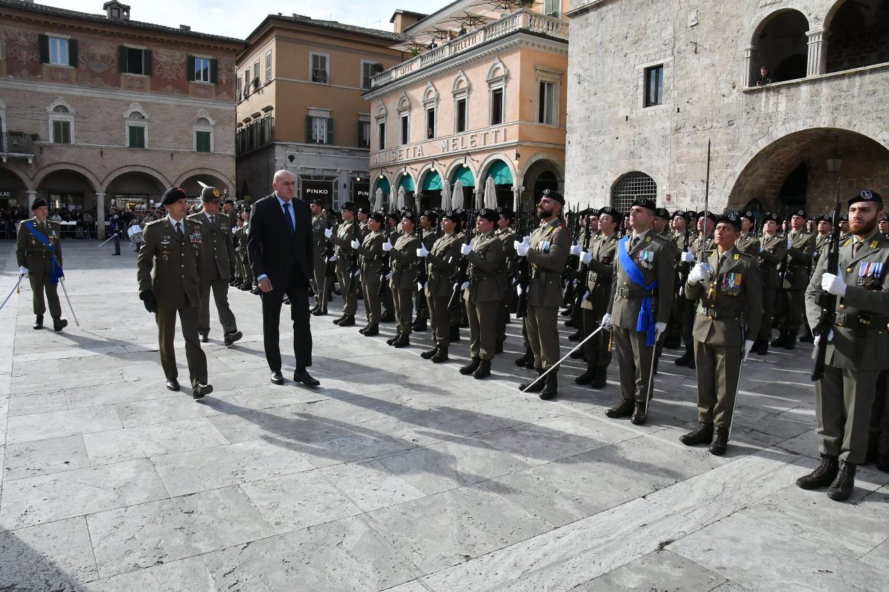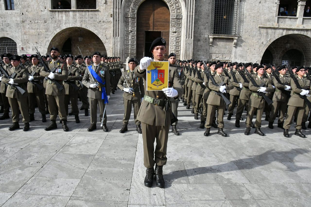 ASCOLI - Piazza del Popolo gremita per la solenne cerimonia dedicata ai volontari in ferma iniziale in forza al 235° Reggimento Addestramento Volontari “Piceno”. Presenza speciale del rappresentante del governo