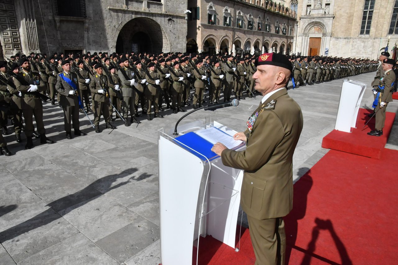 Particolarmente sentito l’intervento del tenente colonnello Gianfranco Paglia, Medaglia d’Oro al Valor Militare, che ha letto il tradizionale messaggio del Gruppo Medaglie d’Oro. Le sue parole hanno richiamato i valori fondanti della forza armata: spirito di servizio, solidarietà, dedizione e senso del dovere, indicando ai giovani volontari la strada che li attende.