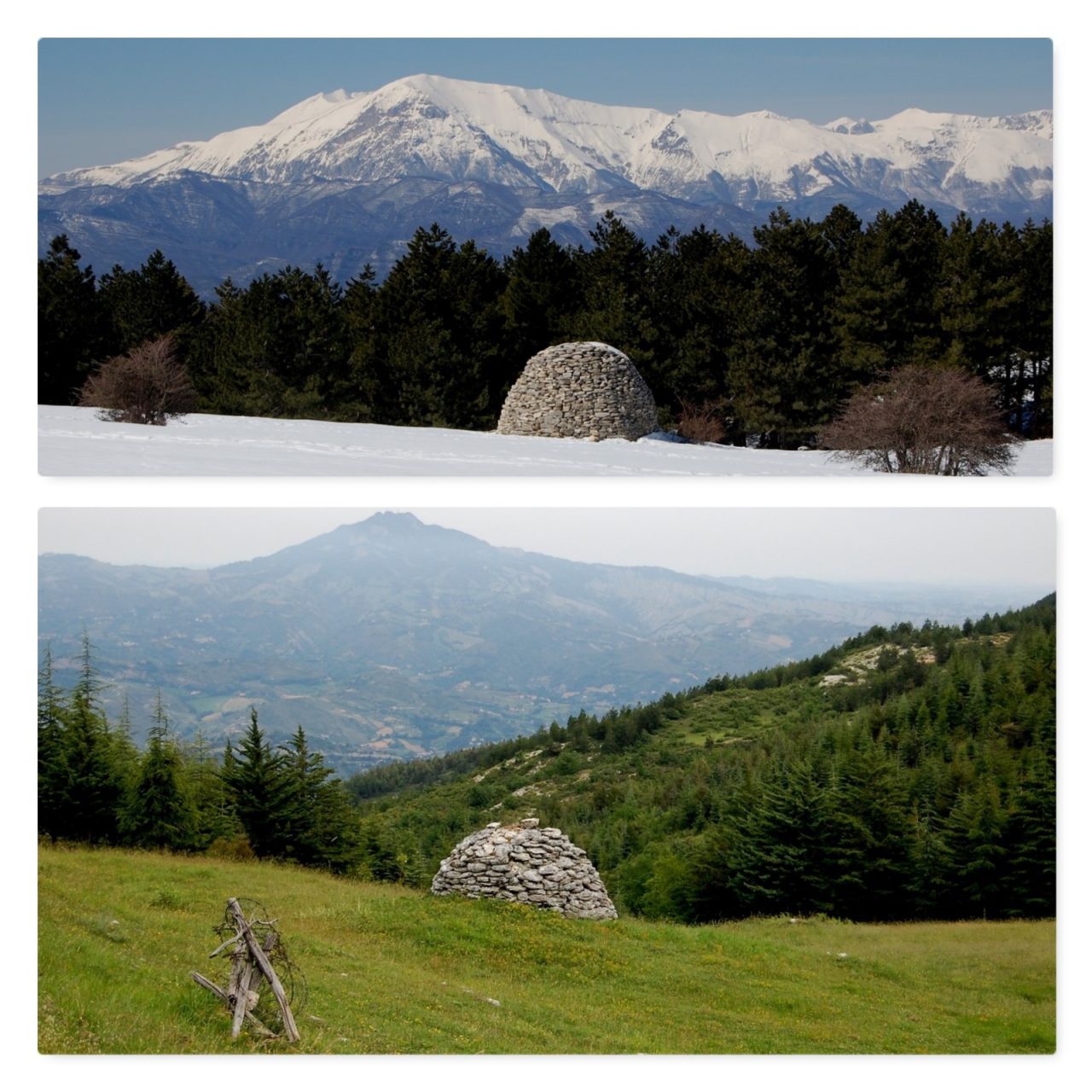Le capanne in pietra a secco. Tecnicamente, le capanne in pietra a secco sono costruzioni monocellulari col tetto a falsa cupola, edificate utilizzando anelli concentrici di pietre, a diametro decrescente e disposti orizzontalmente uno sull’altro, di solito chiuse in cima da una pietra piatta. Esse sono state edificate in aree vocate per la pastorizia, approfittando di una serie di condizioni, elencate qui di seguito. Tre sono quelle che, in maniera particolare, hanno permesso la loro costruzione: la facile reperibilità in loco di materiale litico calcareo affiorante o poco profondo – quindi facilmente disponibile – rinvenuto durante lo spietramento delle aree da utilizzare a pascolo; l’utilizzazione della statica, relativamente semplice da intuire, della falsa cupola (il cosiddetto sistema trilitico), innalzata a partire da un perimetro circolare; la probabile imitazione dell’esempio costruttivo pugliese, scoperto nel corso della pratica della transumanza o, comunque, la riproduzione di costruzioni estranee alla cultura locale. Una precisazione: per alcuni studiosi l’origine delle capanne è transadriatica, come vedremo nel prosieguo dell’articolo.