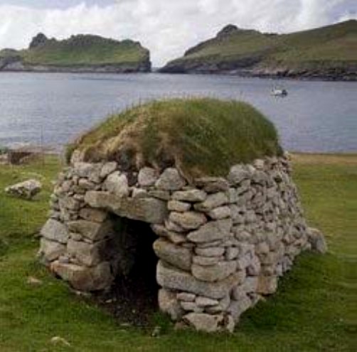 Una cleit dell’isola di St. Kilda dell’arcipelago delle Ebridi esterne. Il “tetto” inerbito serve per impermeabilizzare l’interno della costruzione