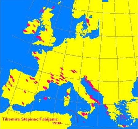 Nella mappa schematica di Stepinac-Fabijanic (1990) la presenza sul territorio delle costruzioni in pietra a secco che sfruttano la caratteristica della falsa cupola