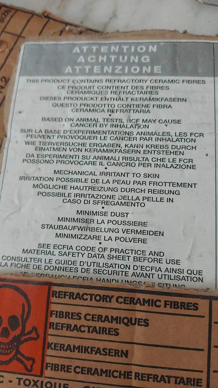 Rumore, radioattività, gas, forni di cottura che andavano dai 750 gradi ai 1.100 gradi ed una scritta che più di tutte, posta sugli scatoloni delle fibre ceramiche refrattarie, a rileggerla oggi fa impressione: “Da esperimenti condotti su animali risulta che possono provocare il cancro per inalazione”.