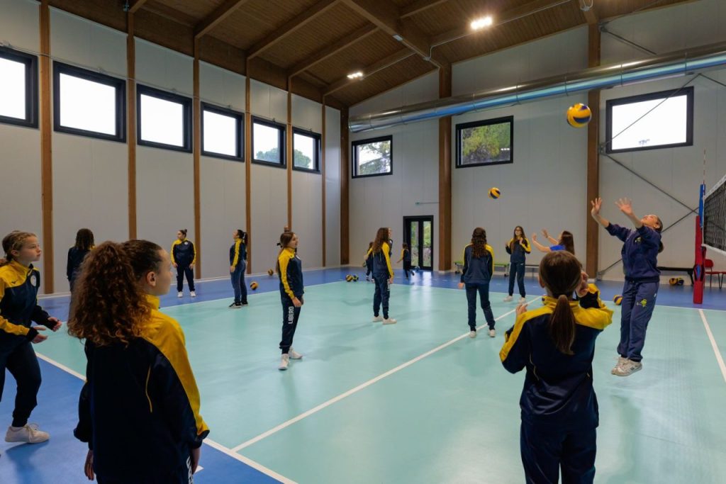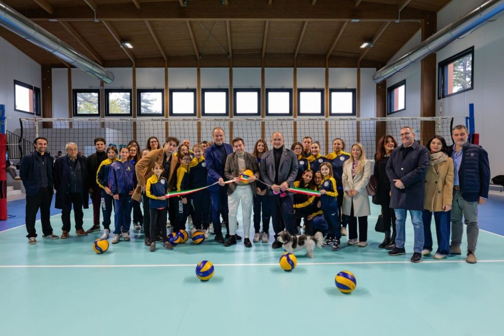 LA STRUTTURA – Il taglio del nastro è avvenuto dopo la conclusione del primo lotto funzionale di un intervento finanziato con risorse Pnrr “Missione 5, Componente 2.3, Investimento 3.1 – Sport e inclusione sociale – Cluster 1”, per un importo di 990.000 euro che ha previsto un cofinanziamento da parte dell’Amministrazione comunale pari a 150.000 euro. Il progetto ha previsto un impianto ad elevate prestazioni energetiche, con copertura curvilinea ottenuta con una serie di portali in legno lamellare a passo costante di altezze diverse, collegati da pannellature a doppia curvatura. Al suo interno è stato realizzato un campo da pallavolo omologato per la Serie B, una tribuna ospiti da 95 posti e uno spazio servizi per il pubblico. Con il secondo lotto funzionale, che prenderà il via entro la fine di novembre, saranno completate le aree servizi attraverso un ulteriore finanziamento di 185.000 euro comunali e le economie di gara autorizzate dalla Presidenza del Consiglio dei Ministri – Dipartimento dello Sport.