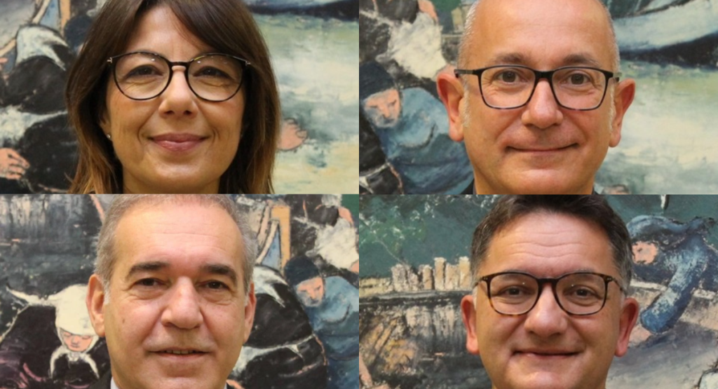 Gli assessori dimissionari Cinzia Campanelli e Domenico Pellei, il capogruppo di Centro Civico Popolare Fabrizio Capriotti, il sindaco Domenico Spazzafumo