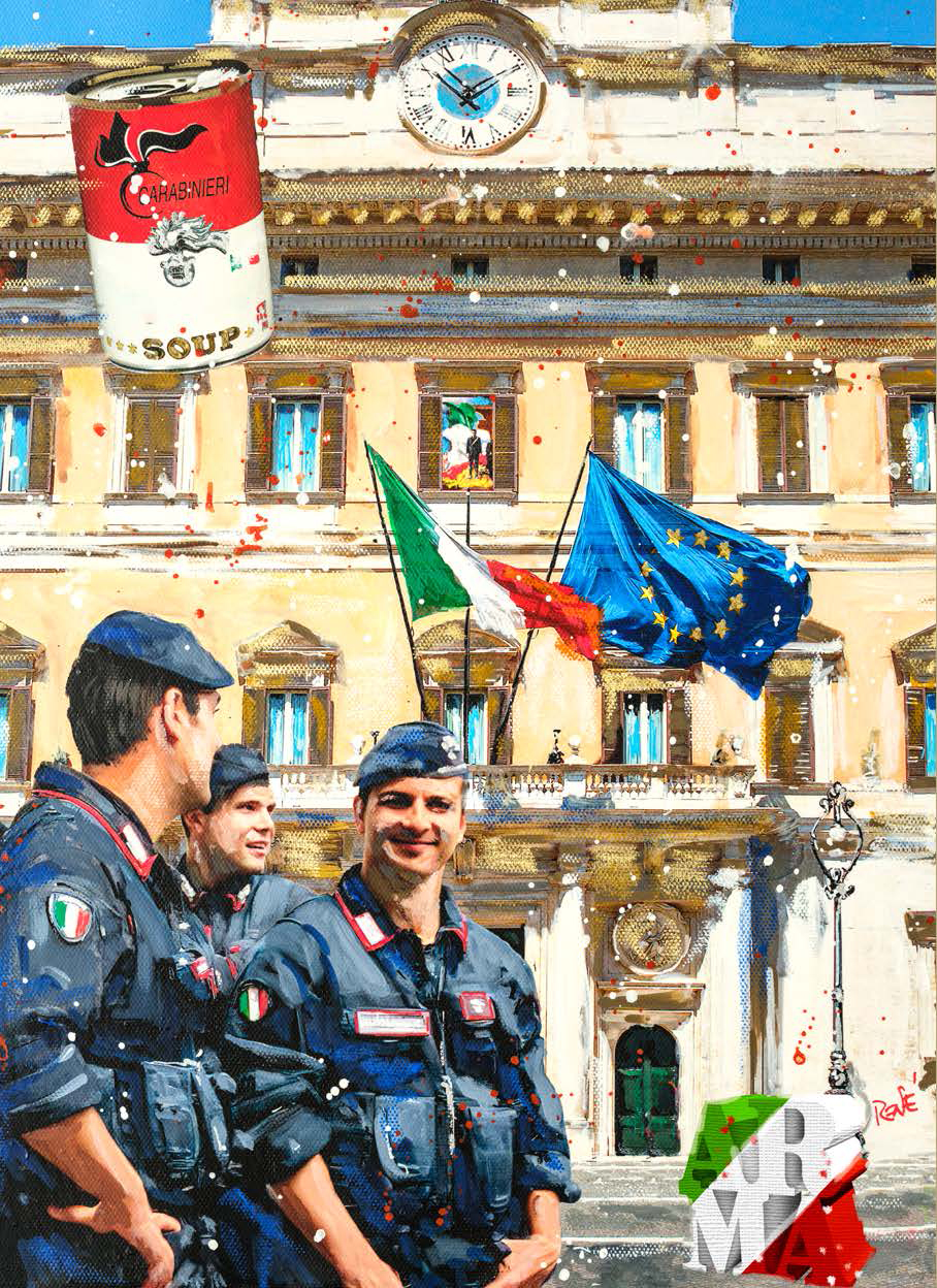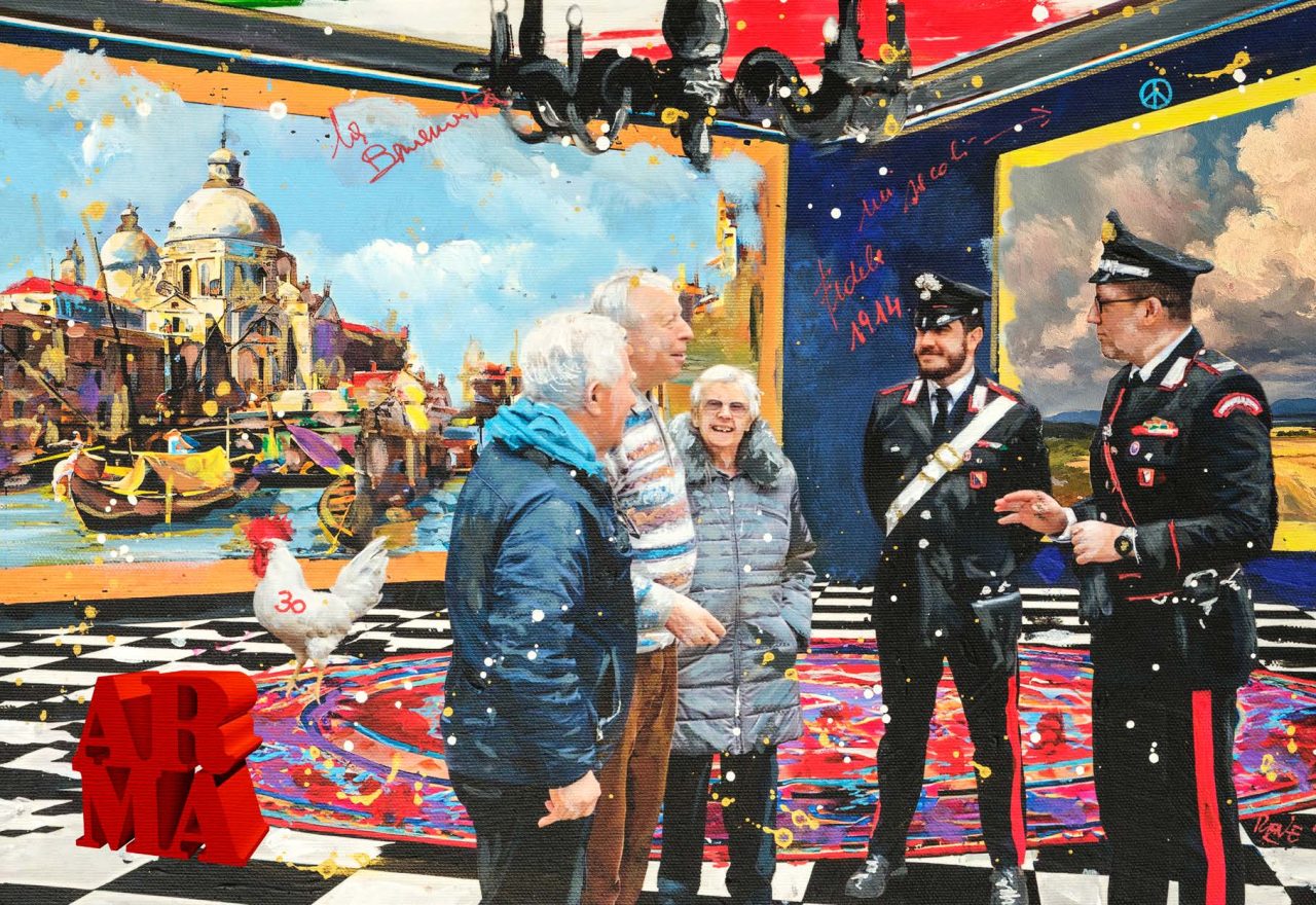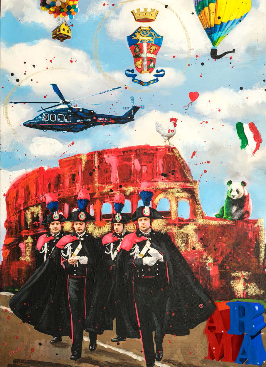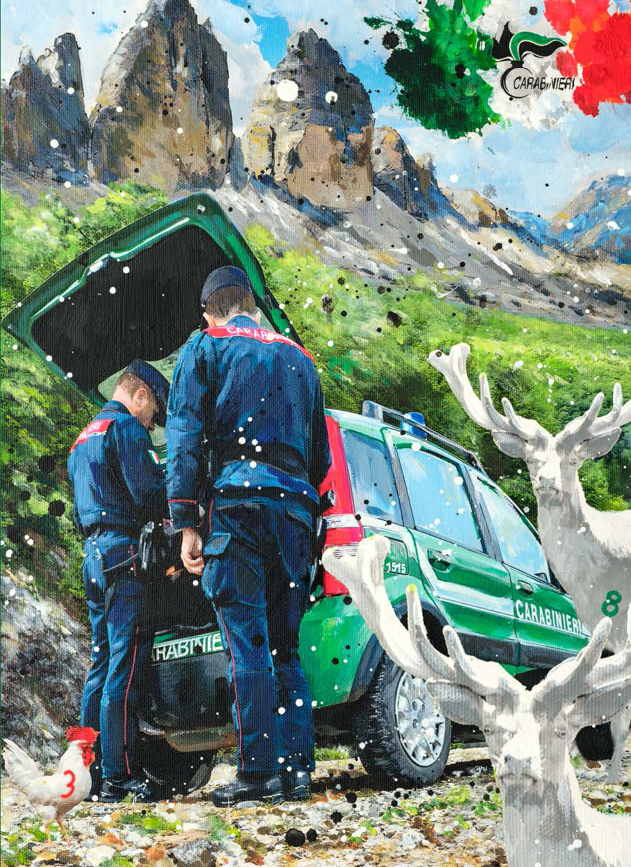 Le tavole sono state realizzate dall’artista Luigi “René” Valeno, maestro della nuova Pop Art italiana. Con uno stile vivace e luminoso, le sue opere raffigurano i Carabinieri nel pieno del loro servizio, tra la gente e nei luoghi simbolo della cultura italiana, restituendo un’immagine di presenza costante, dedizione e umanità.