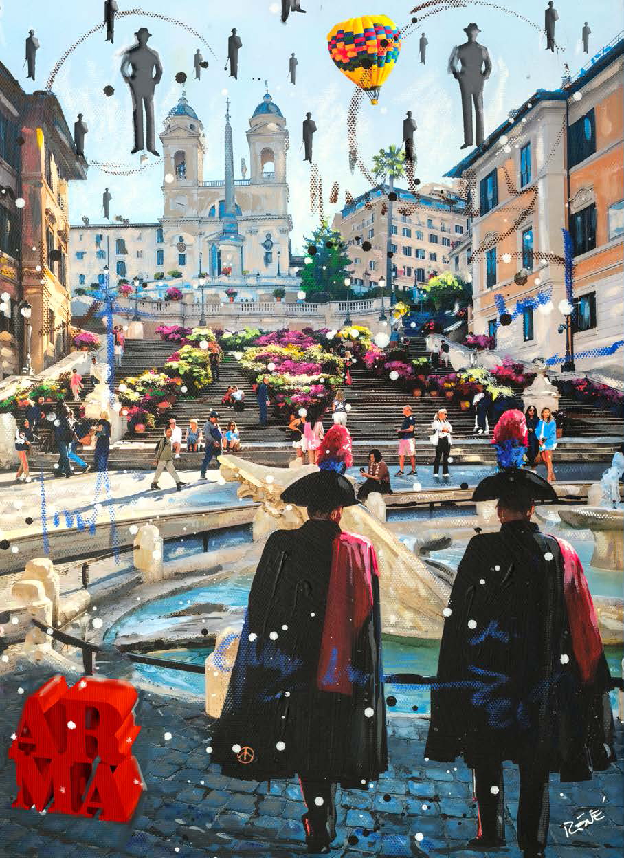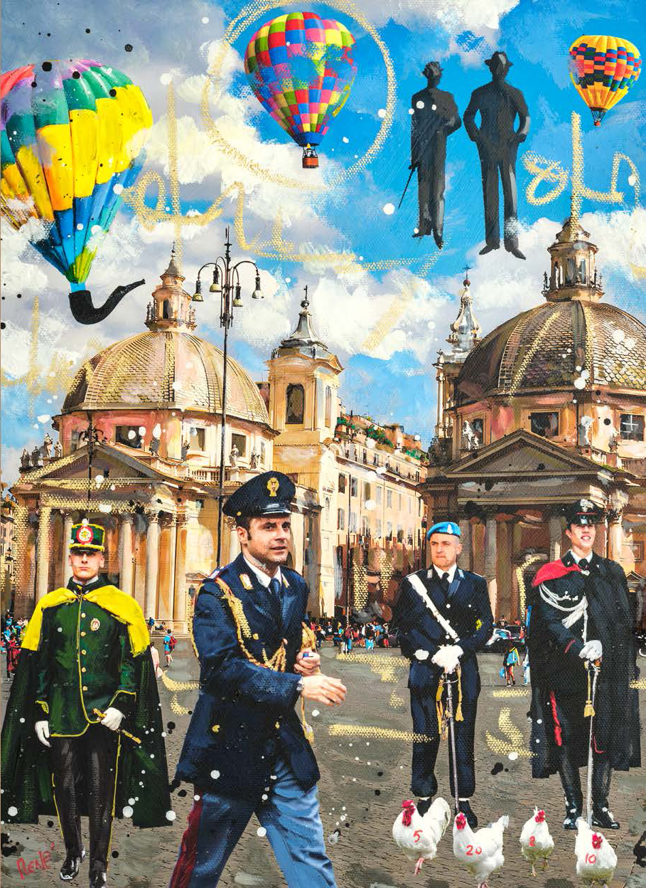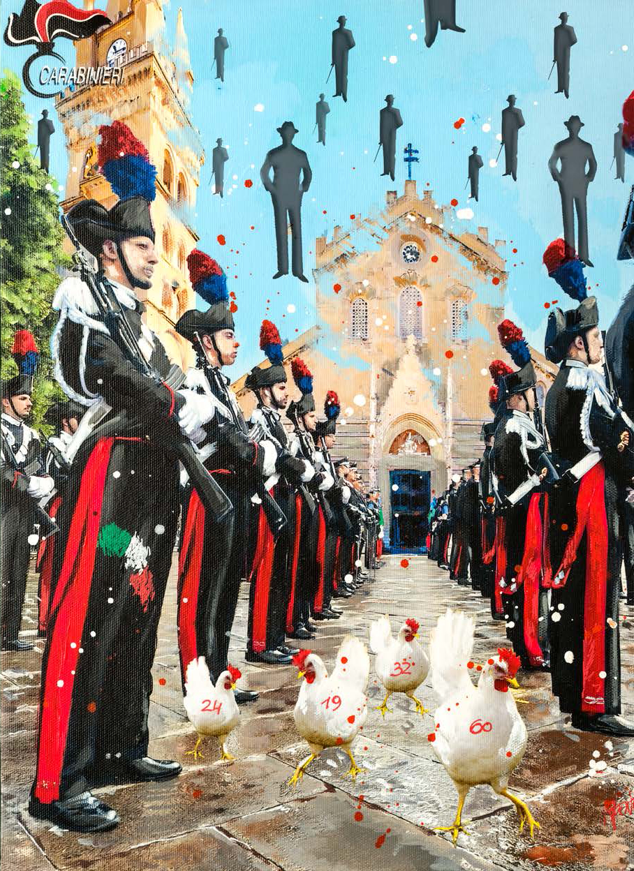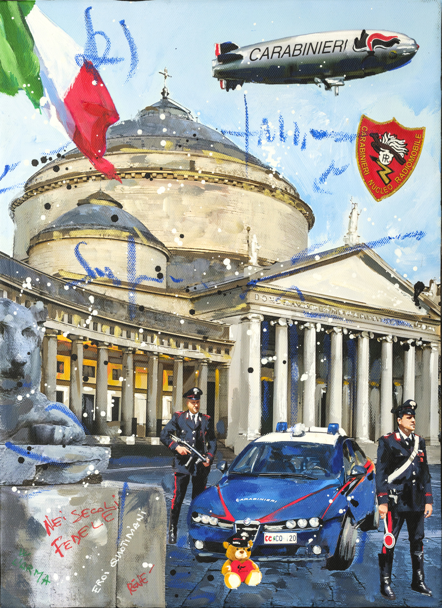 Le tavole sono state realizzate dall’artista Luigi “René” Valeno, maestro della nuova Pop Art italiana. Con uno stile vivace e luminoso, le sue opere raffigurano i Carabinieri nel pieno del loro servizio, tra la gente e nei luoghi simbolo della cultura italiana, restituendo un’immagine di presenza costante, dedizione e umanità.