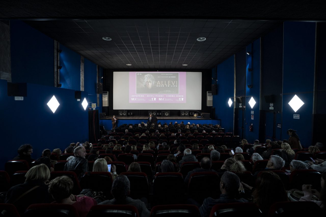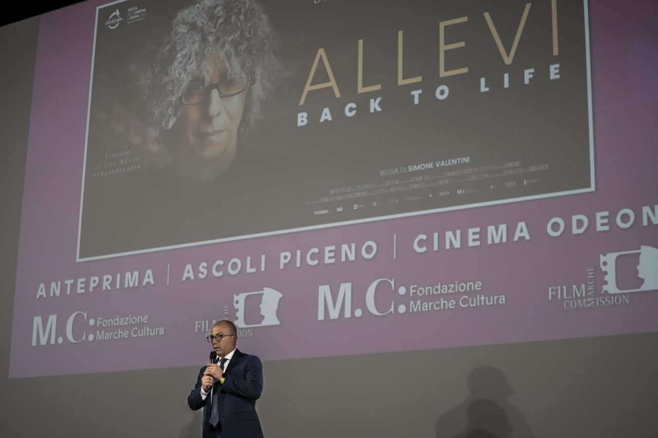 «Che meraviglia vedervi, grazie davvero!». Poche, pochissime parole pronunciate al termine dell’affollata proiezione del docufilm “Back to life”, presentato in anteprima alla multisala Odeon proprio per omaggiare la sua terra. Il maestro Giovanni Allevi sale sul palcoscenico tra gli applausi scroscianti che hanno accompagnato l’affollata presentazione del lavoro che documenta la sua rinascita dopo la malattia: artistica, emotiva, fisica, spirituale.