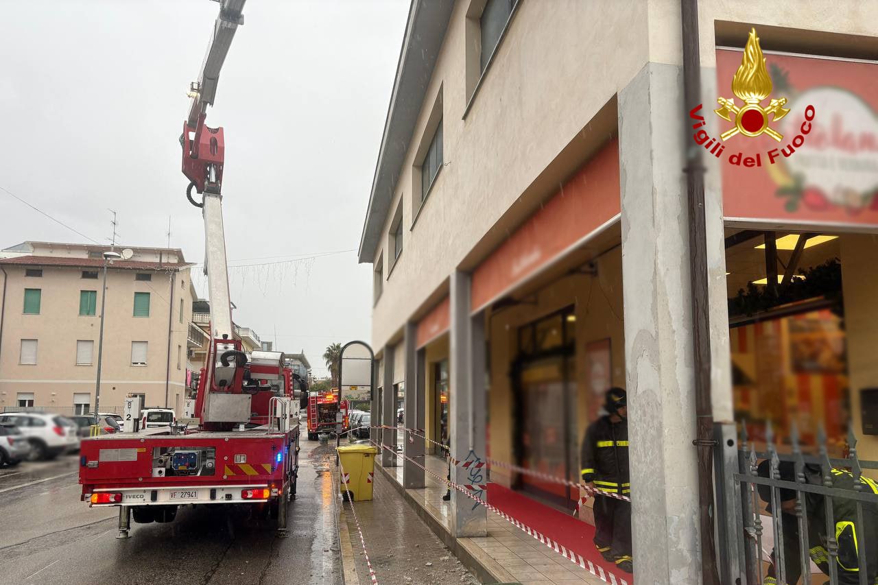 A San Benedetto del Tronto, invece, è stato segnalato il distacco di una parte di cornicione di un edificio: dopo aver rimosso le parti pericolanti, la zona sottostante è stata transennata a scopo precauzionale.
