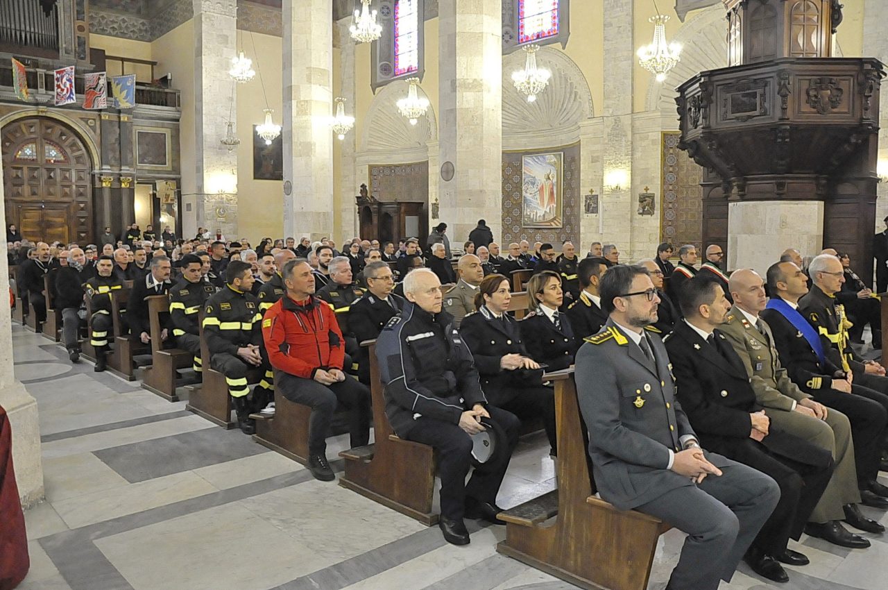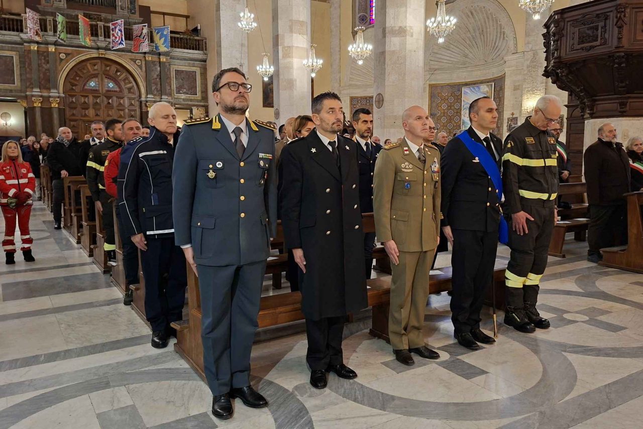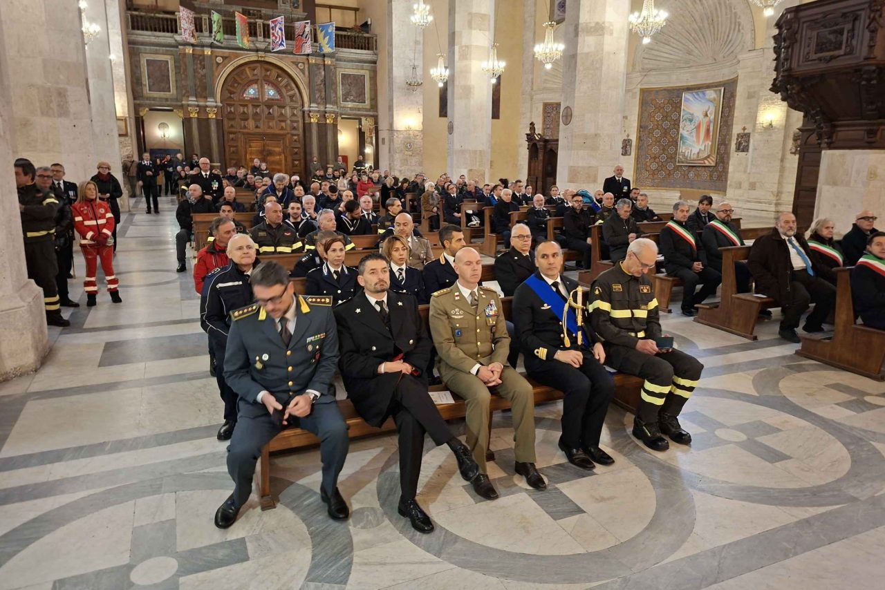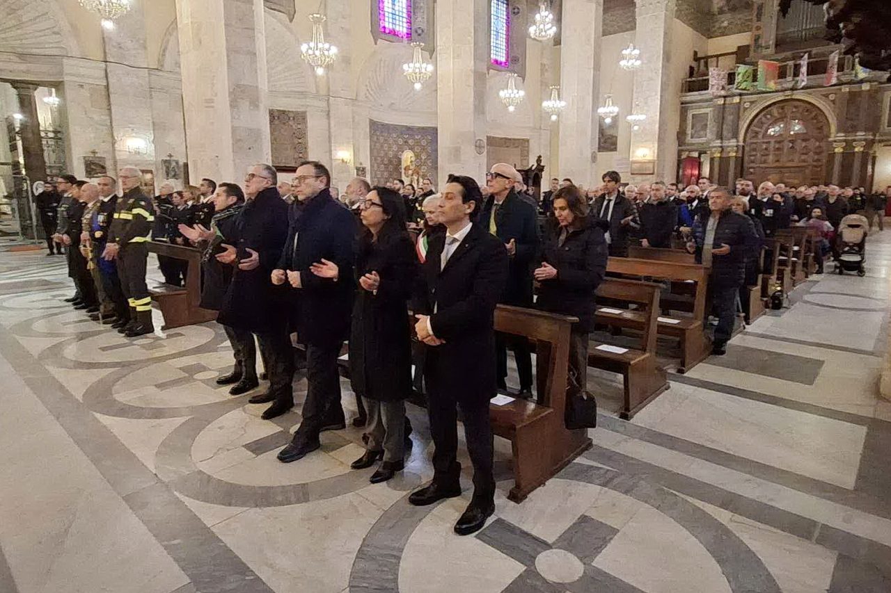 La cerimonia religiosa si è svolta oggi nella Cattedrale di Ascoli Piceno, gremita di autorità civili, militari e religiose. A presiedere il rito è stato l’arcivescovo Gianpiero Palmieri, affiancato da don Lino Arcangeli, da sempre vicino ai Vigili del Fuoco, e da don Nicola Spinozzi, cappellano della Capitaneria di Porto, che ha portato con sé una reliquia di Santa Barbara utilizzata per la solenne benedizione finale.
