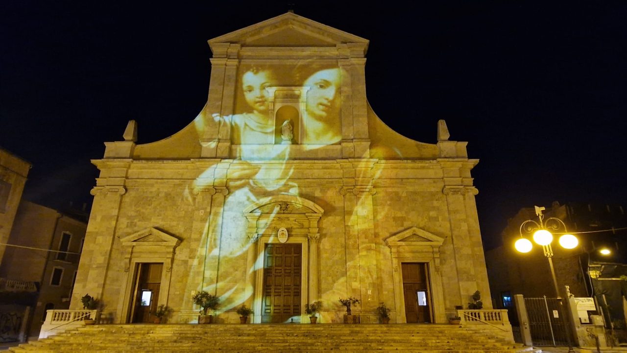 L’immagine della Madonna della Marina proiettata sulla cattedrale
