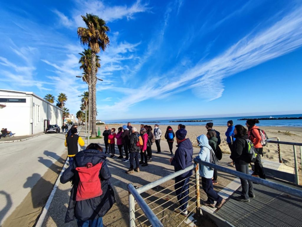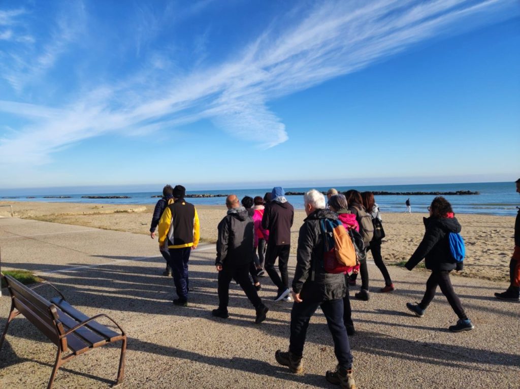 Dopo l’accoglienza dell’assessore Daniela Luciani, i 30 partecipanti all’iniziativa, tra autoctoni e curiosi delle province limitrofe, sono partiti alle 9:30, dal parcheggio della pensilina Beyfin, con direzione mare. Sin dall’inizio, le guide hanno invitato tutti i partecipanti a porre la loro attenzione al paesaggio circostante e soprattutto a sé stessi, al proprio respiro e alle proprie sensazioni.